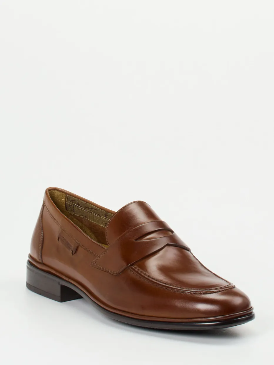 Italienische Eleganz mit minimalistischem Feinschliff.Galizio Torresi präsentiert bei diesem Herren-Loafer ein Modell der klassischen Linie. Perfekt für stilbewusste Tage im Büro oder gepflegte Freizeitaktivitäten: Hochwertiges, glänzendes Kalbleder in warmem Mittelbraun trifft auf eine zeitlose Silhouette mit Penny-Steg und Mokassinnaht. Innen sorgt ein ledernes Futter für angenehmen Komfort, ergänzt durch ein weich gepolstertes Fußbett. Die flache Gummisohle mit teilweiser Vernähung bietet rutschfeste Stabilität im Alltag. Dezente Nähte und das minimalistische Branding runden das cleane Erscheinungsbild ab. Optimal zu Anzughose oder Chino kombinierbar. Ein klassischer Herrenschuh – gefertigt mit italienischem Anspruch an Qualität und Ästhetik.