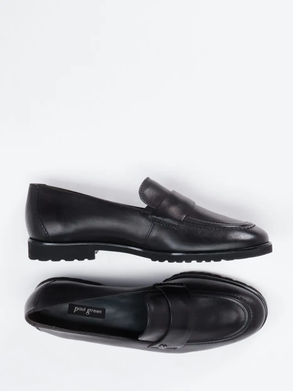 Klassik trifft auf dezente Raffinesse.Paul Green präsentiert mit diesem Damen-Loafer ein elegantes Modell im Slipper-Stil. Für den Arbeitsalltag ebenso geeignet wie für entspannte Freizeitmomente: Der tiefschwarze Loafer setzt auf geschmeidiges Kalbleder mit mattierter Oberfläche und fein gearbeiteten Nähten. Ein frontaler Riegel akzentuiert die klassisch flache Form, während die flexible Profilsohle Trittsicherheit garantiert. Das Futter aus samtigem Veloursleder und die gepolsterte Innensohle sorgen für angenehmen Komfort. Inspiriert vom Preppy-Stil ergänzt er perfekt die ruhige Ästhetik des Quiet-Luxury-Trends. Ein souveräner Allrounder mit dem Qualitätsversprechen von Paul Green.