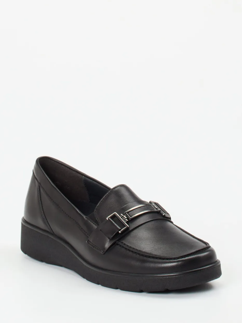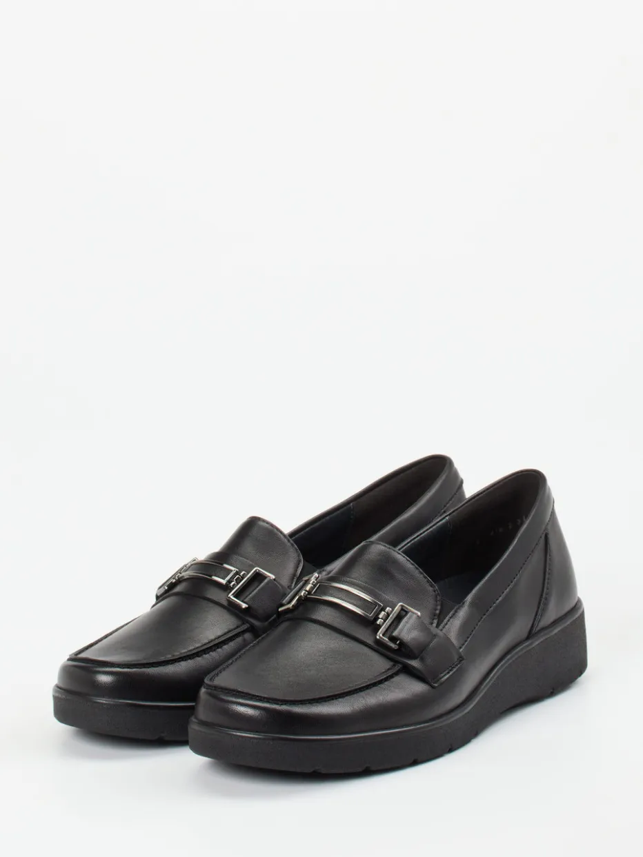 Dieser bequeme Damen-Loafer überzeugt durch hochwertiges Kalbleder und eine flexibel profilierte PU-Sohle – modisch im Quiet-Luxury-Stil und ideal für Komfortansprüche im Alltag.