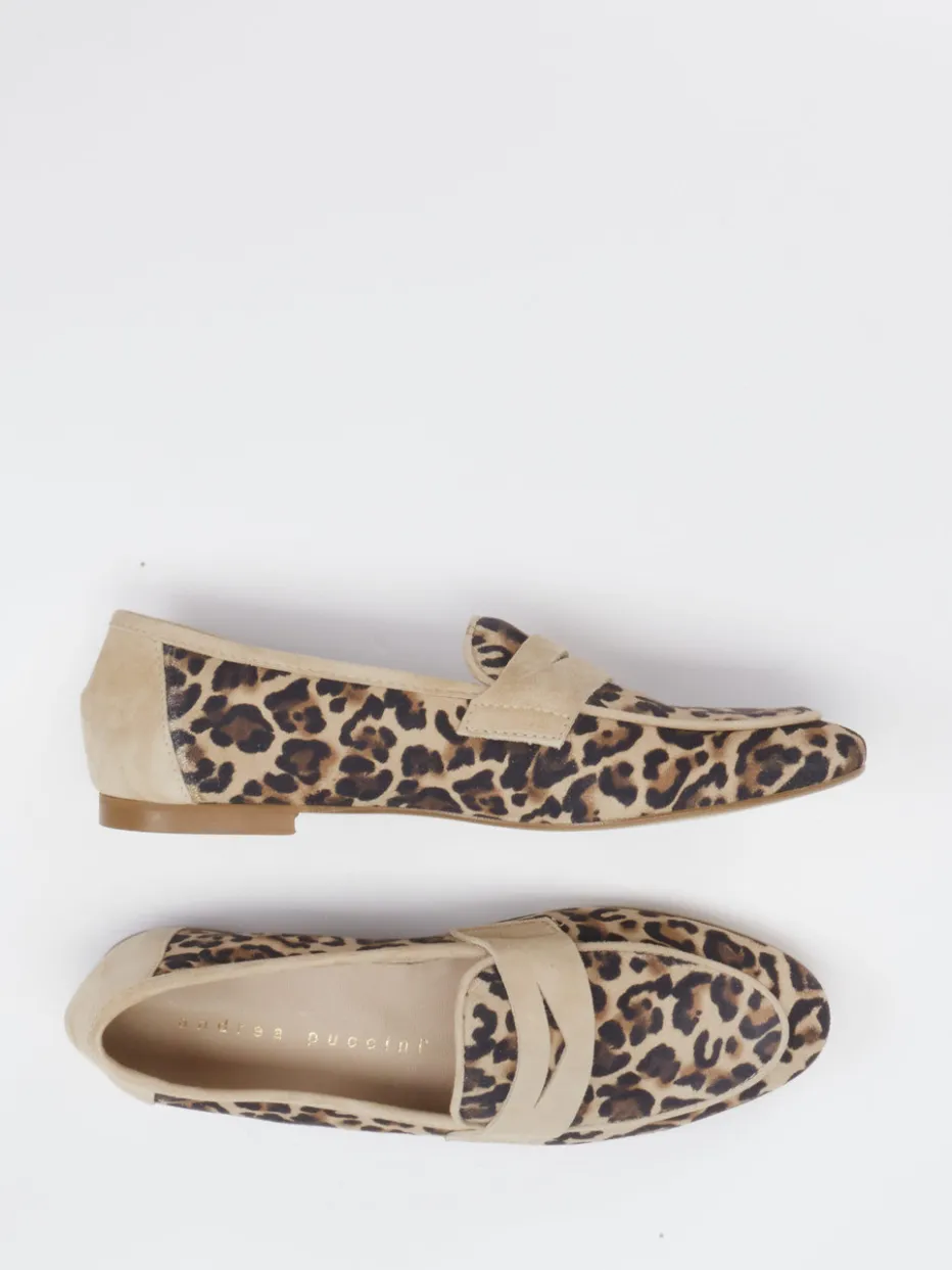 Der auffällige Loafer von Andrea Puccini kombiniert weiches Kalbleder mit trendigem Leoprint – ideal für modische Looks mit individuellem Charakter.