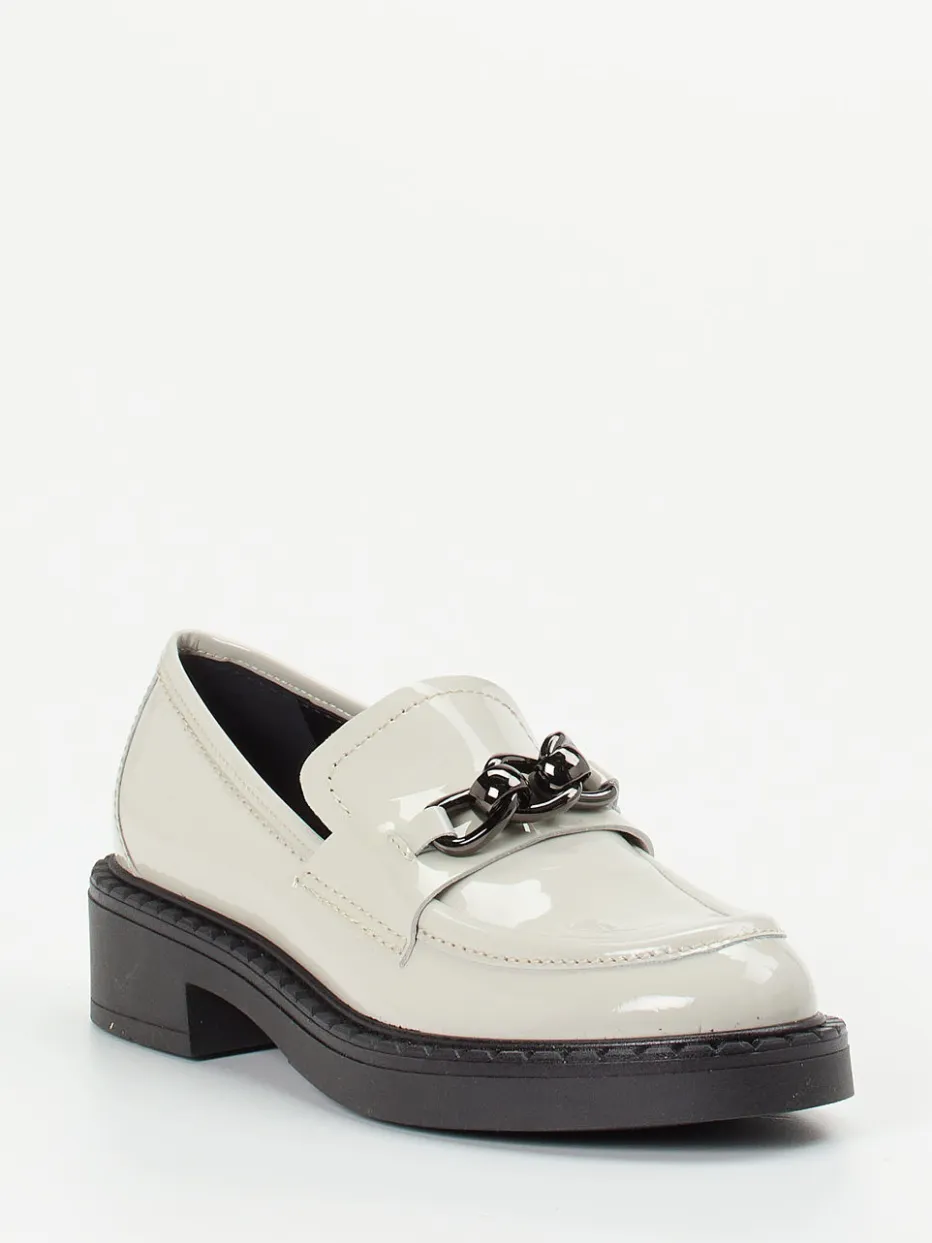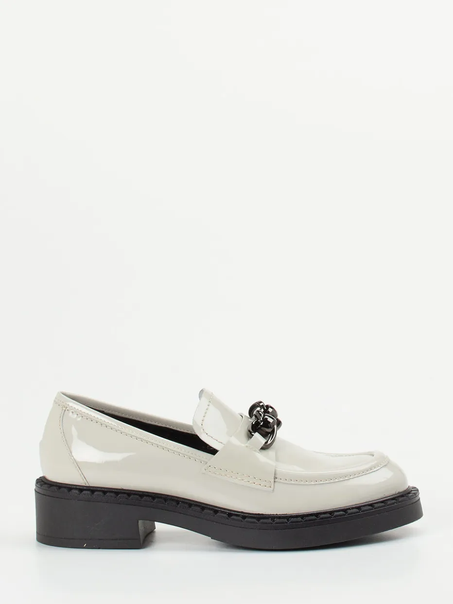 Dieser Statement-Loafer vereint hochwertiges Lackleder mit markanter Zierkette – ein stilvolles Upgrade für cleane Business- und Streetwear-Looks.