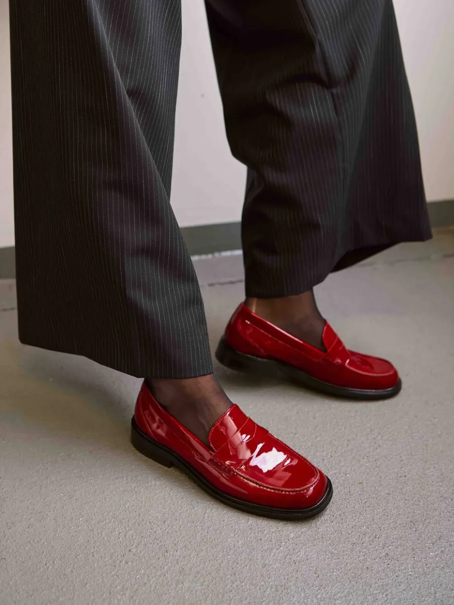 Mit glänzendem Lackleder und klassischer Loafer-Silhouette vereint dieses Modell Vintage-Charme und moderne Signalwirkung. Ideal für stilbewusste Looks im Alltag oder im urbanen Nachtleben.