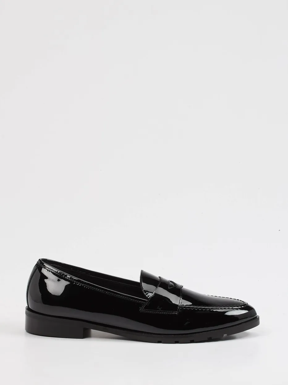Mit glänzendem Lackleder, Zierspange und profilierter Gummisohle vereint dieser Loafer klassischen Chic mit moderner Alltagstauglichkeit.