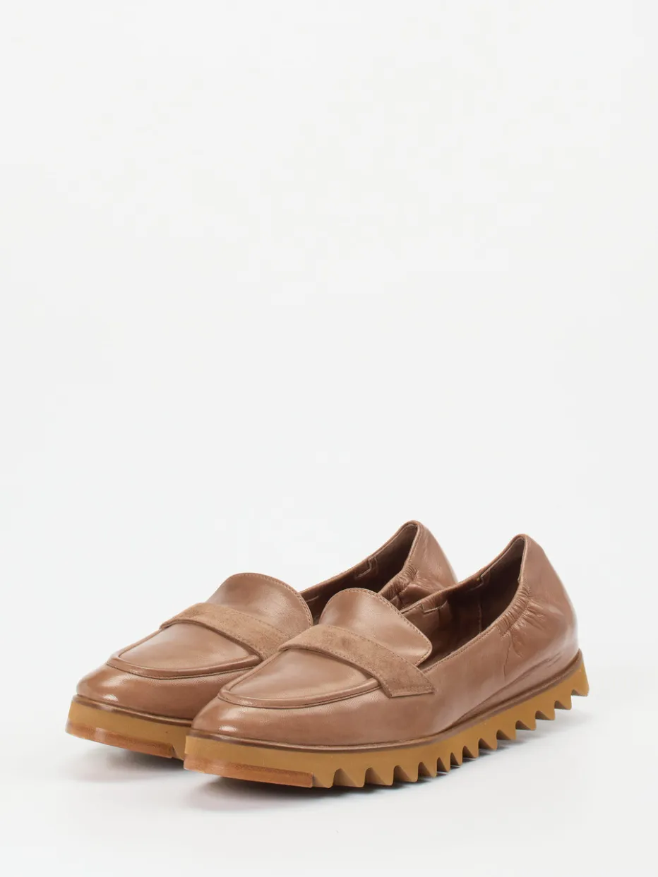 Der elegante Damen-Loafer kombiniert anschmiegsames Lammleder mit samtigem Veloursleder. Die breite Vibram-Profilsohle sorgt für Komfort und sicheren Halt in Alltag und Business.