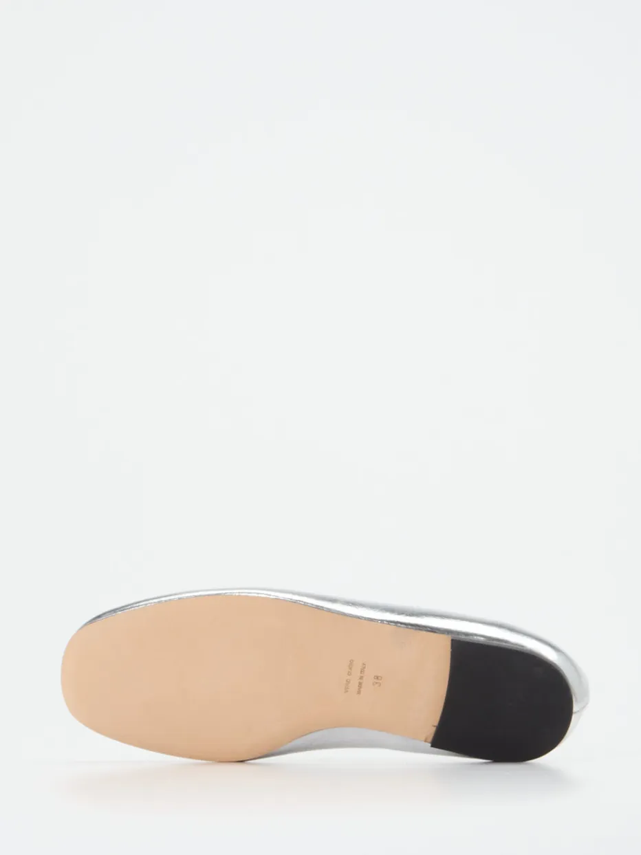 Dieser klassisch geschnittene Loafer vereint edles Metallicleder mit modernem Minimalismus – eine stilvolle Wahl für Business und After-Work.