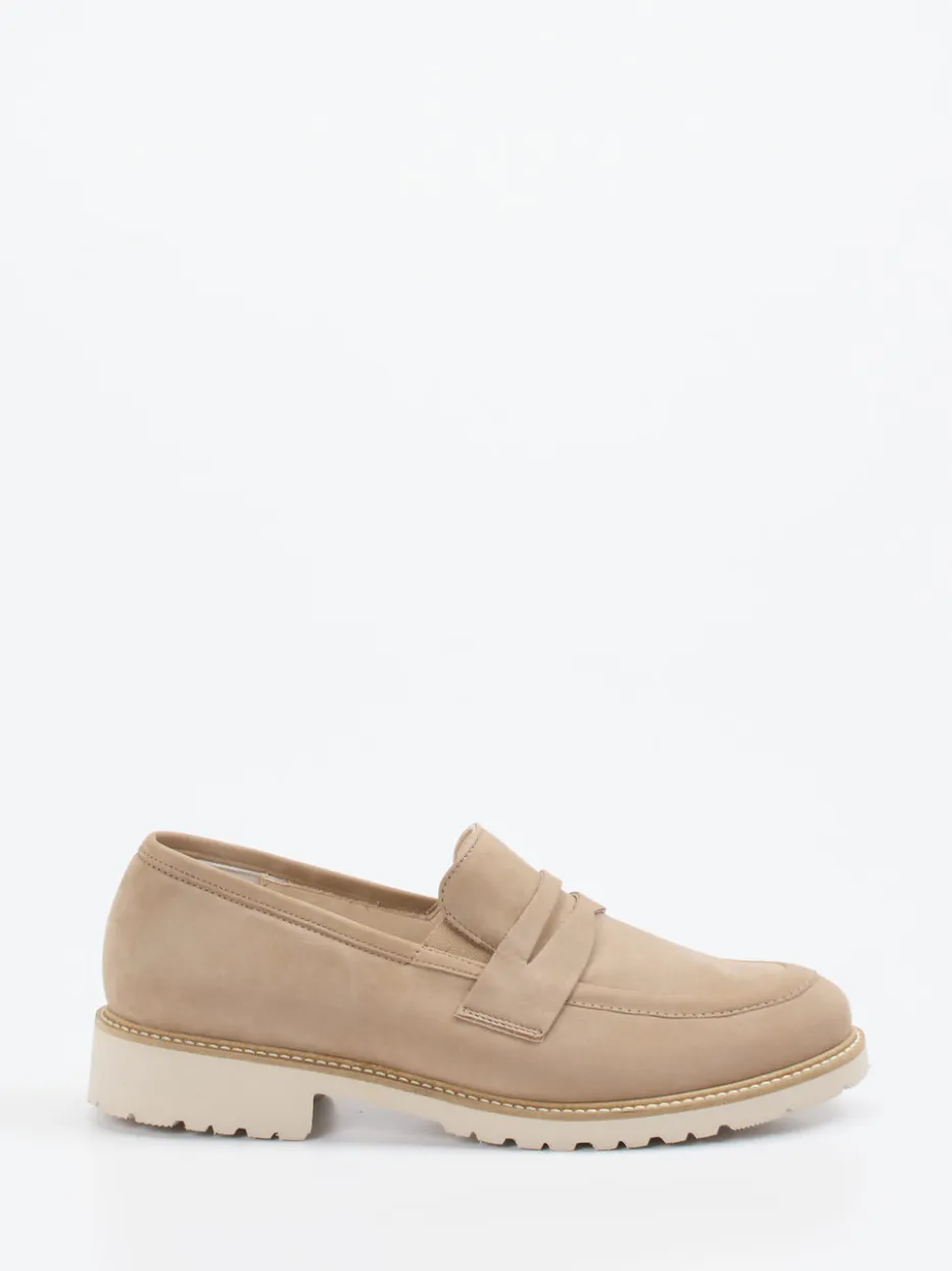 Stilvoller Komfort für jeden Tag.Der Loafer aus dem Hause Semler überzeugt als femininer Trotteur in beigem Nubukleder mit matt-samtiger Oberfläche. Ideal für Tage voller Termine: Die gepolsterte Innensohle und die griffige Profilsohle sorgen für hohen Gehkomfort bei jedem Schritt. Das klassische, niedrig geschnittene Design wird durch einen dezenten Penny-Steg betont. Feine Ton-in-Ton-Nähte und eine helle Laufsohle mit Ziernaht unterstreichen die hochwertige Verarbeitung. Als Schlupfschuh mit Leder-/Textilfutter eignet er sich für stilbewusste Trägerinnen mit Sinn für klare Formen und dezente Trends wie Quiet Luxury. Perfekt zu Chinos oder leichten Sommerhosen. Semler steht für komfortable Passform mit eleganter Leichtigkeit.