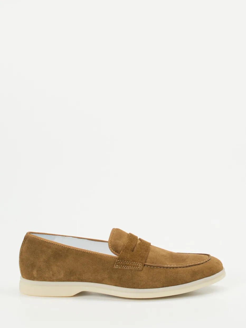Dieser Herren-Loafer vereint samtiges Veloursleder, klare Linien und feinste Verarbeitung zu einem stilvollen Begleiter im Sinne von Quiet Luxury.