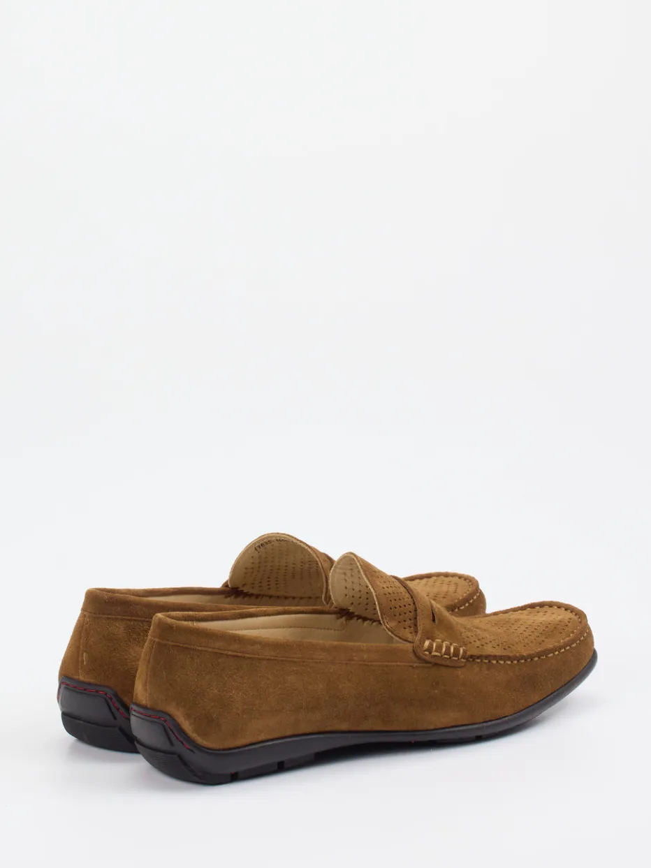 Mit samtigem Veloursleder und perforierter Front vereint dieser Herren-Loafer klassische Eleganz mit sommerlicher Leichtigkeit – ideal für smarte Freizeit- und Büro-Outfits.