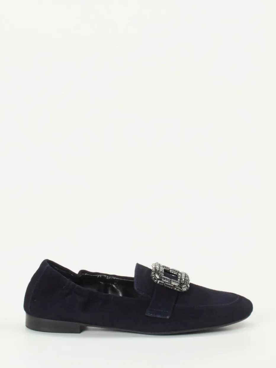 Der Loafer von Andrea Puccini besticht durch edles Veloursleder und eine funkelnde Strassschnalle – ein stilvoller Akzent für elegante Looks.
