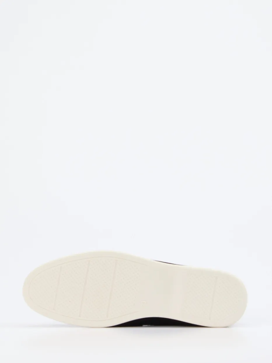 Geradlinige Eleganz mit feinem Kontrast. Andrea Puccini zeigt mit diesem Damen-Loafer einen Slipper für den stilvollen Alltag. Wenn Komfort und dezente Eleganz gefragt sind, überzeugt dieses Modell durch dunkles Veloursleder mit matter Oberfläche und klassischer Silhouette. Der Penny-Strap, feine Ton-in-Ton-Nähte und die helle Kontrastsohle setzen cleane Akzente. Die leichte Leichtzellsohle und das ungefütterte Design machen ihn besonders angenehm an wärmeren Tagen. Modisch passt der Look zum aktuellen „Quiet Luxury“-Trend. Ob zum Trenchcoat oder zur Anzughose – dieser Loafer ergänzt minimalistische Outfits perfekt. Andrea Puccini steht hier für zeitlose Formen kombiniert mit dezenten Stilmitteln.