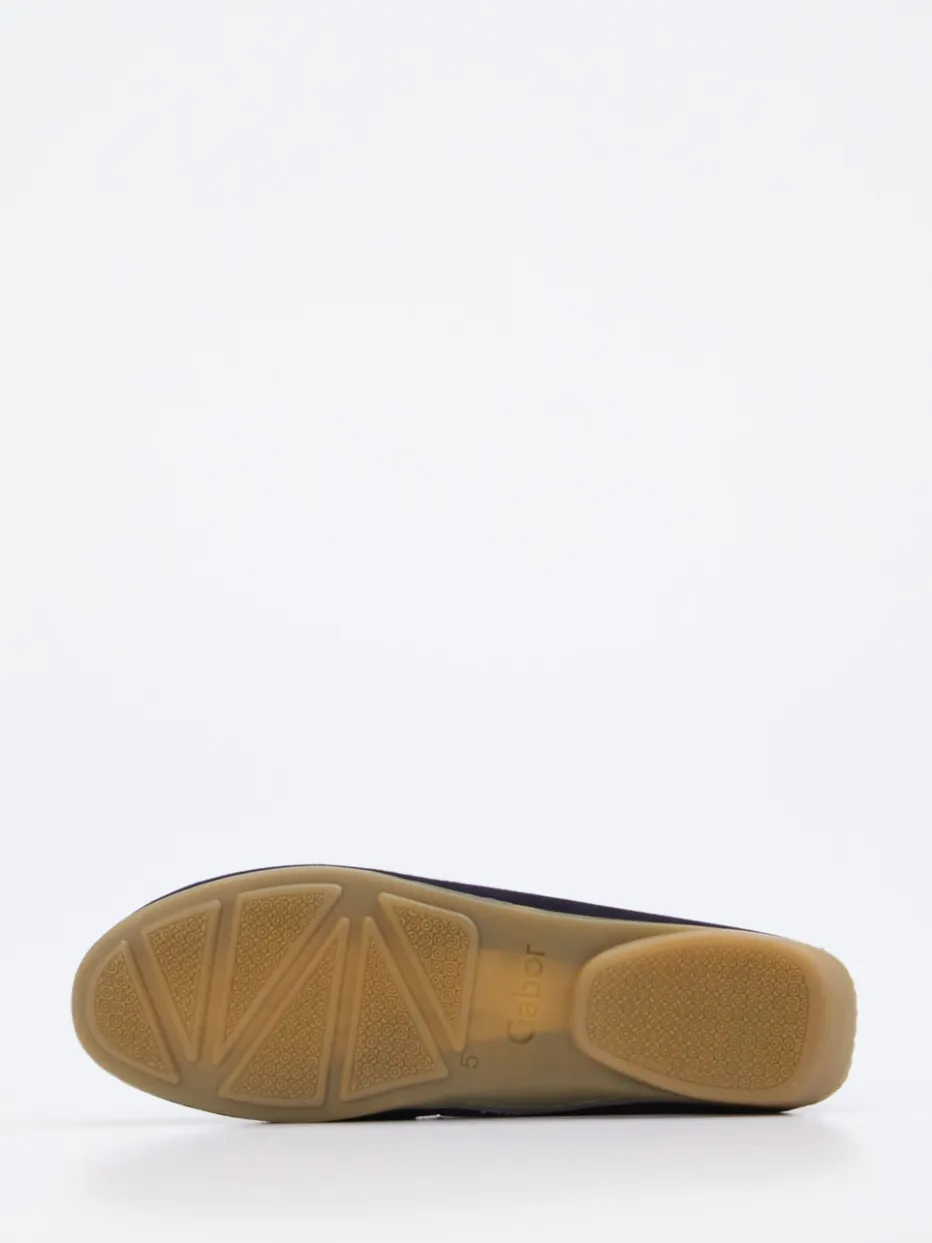 Eleganter Komfort für Business & Freizeit.Gabor präsentiert einen Damen-Loafer mit klassischem Schnitt und fein strukturierter Oberfläche. Der Slipper aus dunkelblauem Veloursleder, samtig angeschliffen, überzeugt mit schmaler Silhouette, Zierlasche auf dem Blatt und dezenter Mokassinnaht. Die flexible Gummisohle mit rutschhemmendem Profil bietet sicheren Halt, unterstützt durch eine weich gepolsterte, lederbezogene Decksohle. Minimalistische Details, flaches Design und hochwertige Materialien prägen den Look – ideal für Preppy-Styles und den „Soft Classics“-Trend der neuen Saison. Ein langlebiger Allrounder mit Understatement und maximalem Tragekomfort – typisch Gabor.