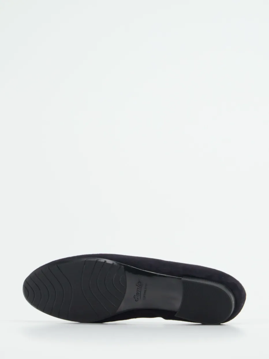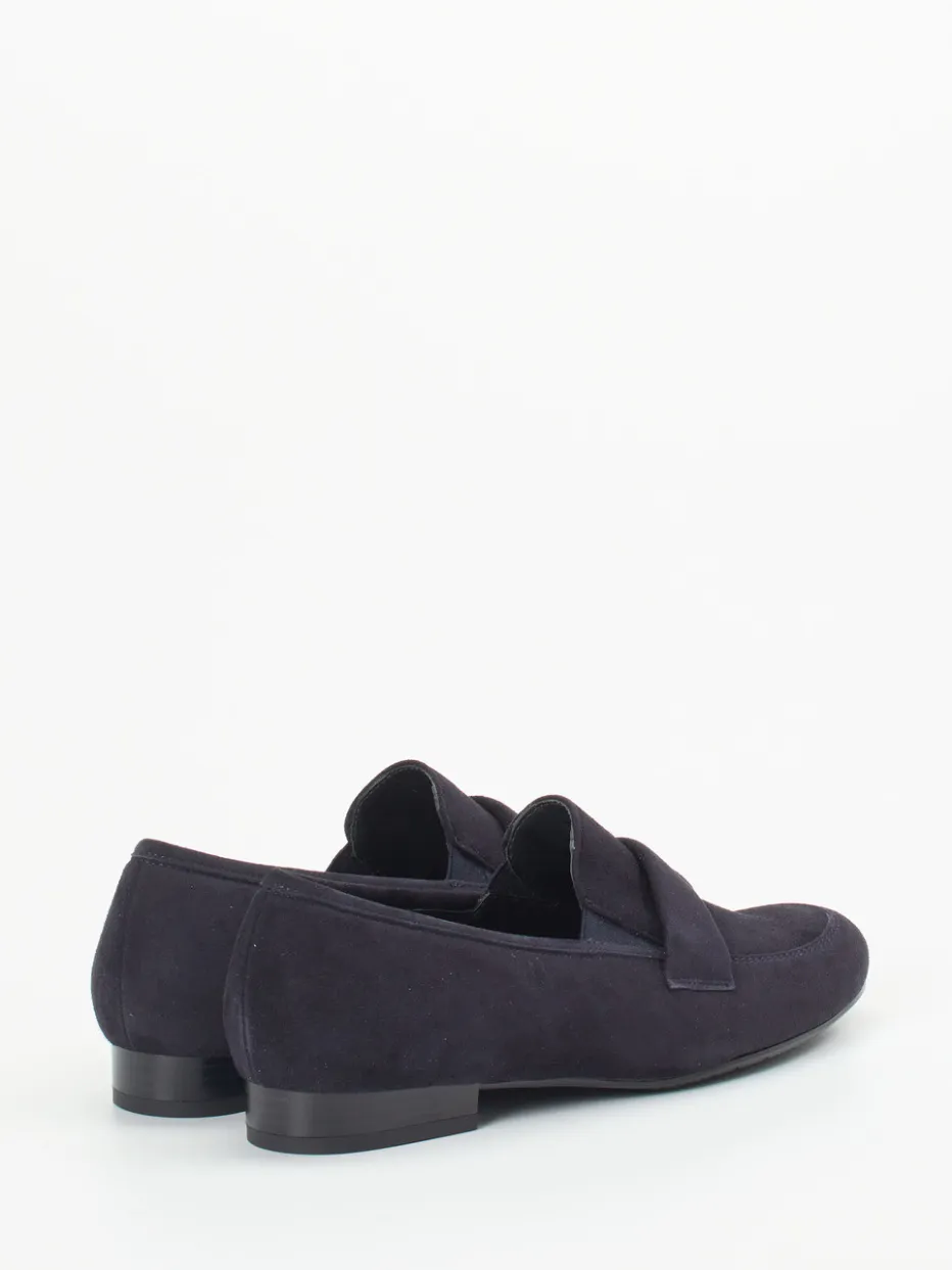 Dieser elegante Damen-Loafer in nachtblauem Veloursleder kombiniert klassische Silhouette mit modernem Minimalismus. Eine flexible Komfortsohle rundet das stilvolle Design funktional ab.