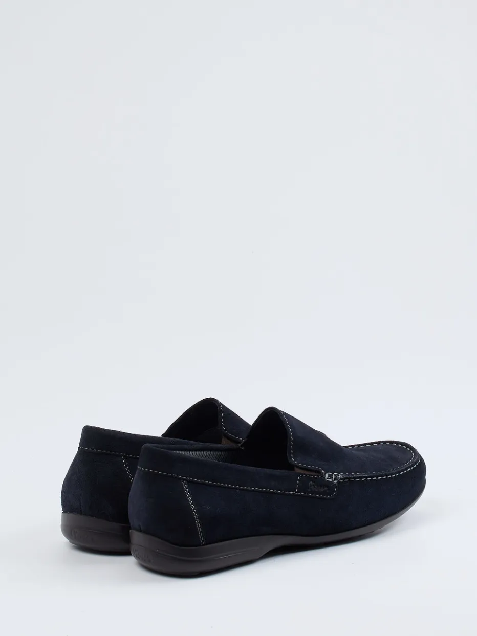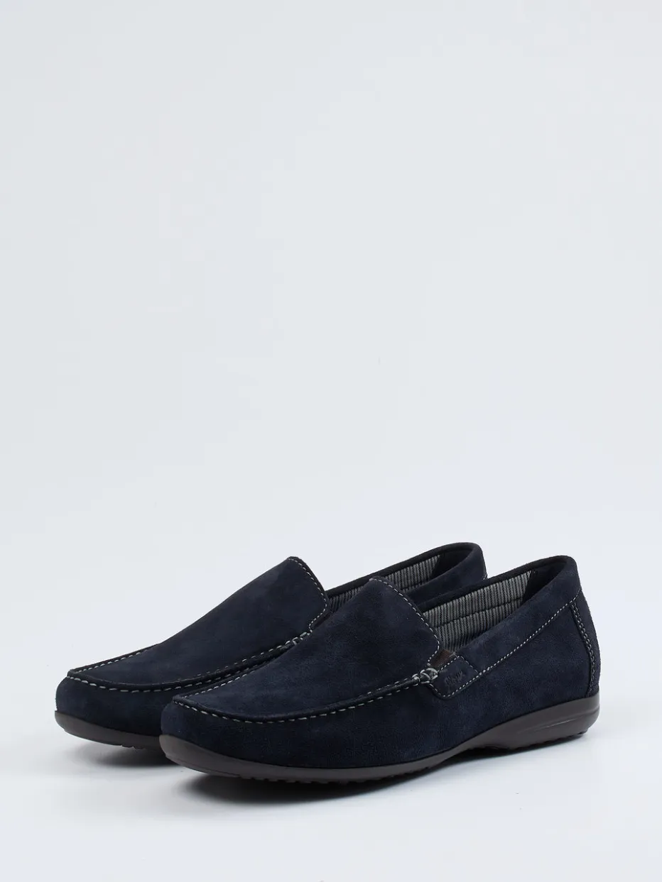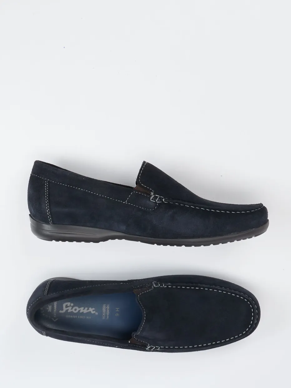 Stilsicher durch Alltag und Büro.Sioux präsentiert einen klassischen Herren-Loafer aus samtig angeschliffenem Veloursleder. Für entspannte Büro-Tage oder gepflegte Freizeitmomente ist dieser dunkelblaue Slipper mit kontrastierender Mokassinnaht wie gemacht. Das weiche Obermaterial aus echtem Veloursleder wirkt in Kombination mit dem angenehmen Textilfutter besonders komfortabel. Dezente Logoprägung, seitliche Ziernähte und die profilierte Gummilaufsohle unterstreichen den stilvoll-reduzierten Look. Inspiriert von Quiet Luxury und Casualwear passt er hervorragend zu Chinos und Leder-Accessoires. Bequem mit klassischer Note – ein Schuh für stilbewusste Individualisten.