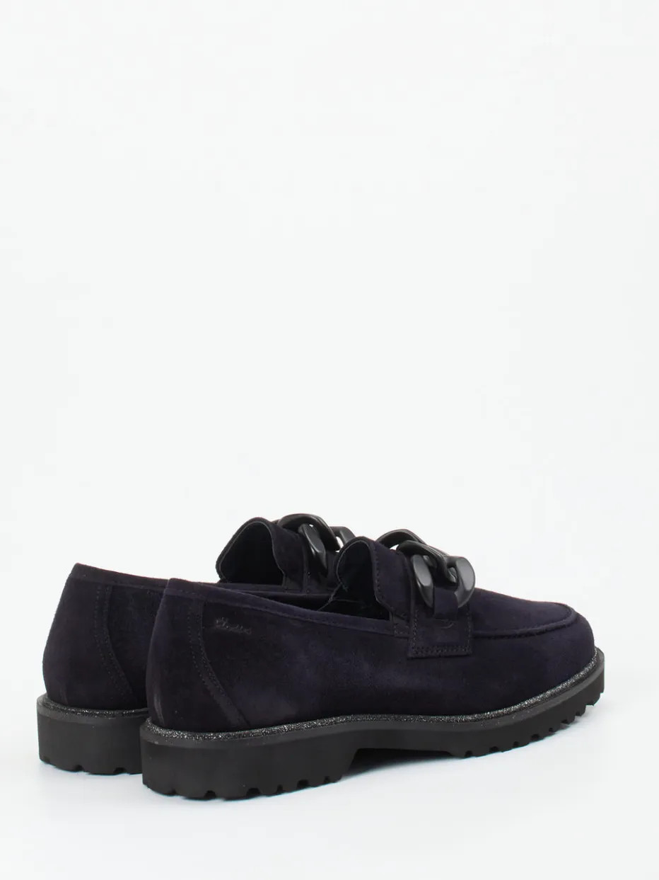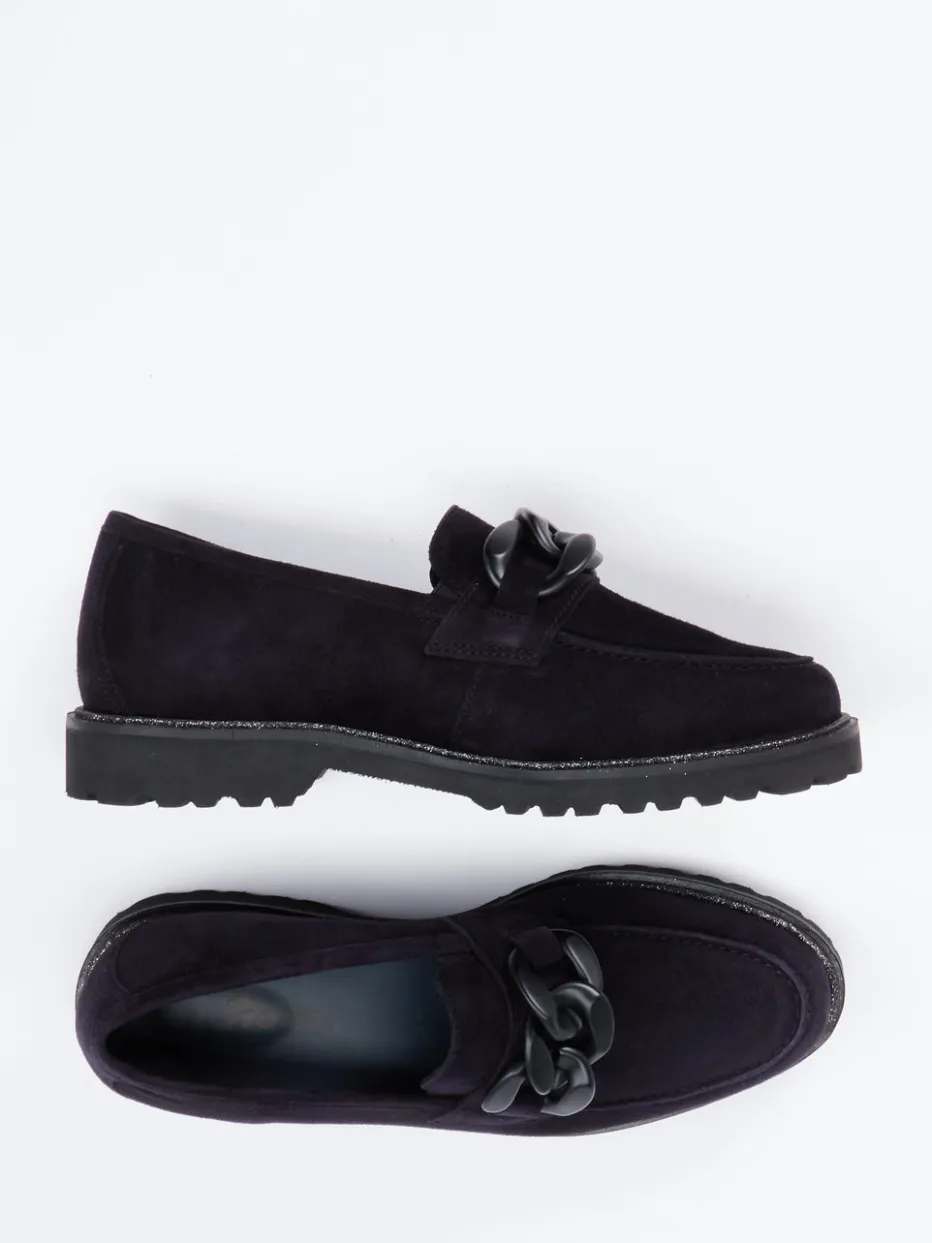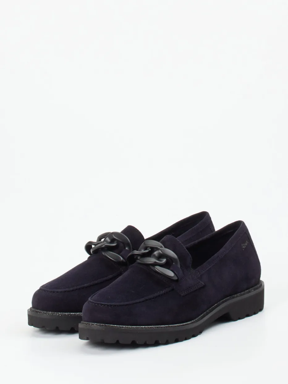 Sioux interpretiert den Damenloafer neu – mit samtigem Veloursleder in tiefdunklem Blau und markanten Streetwear-Einflüssen.