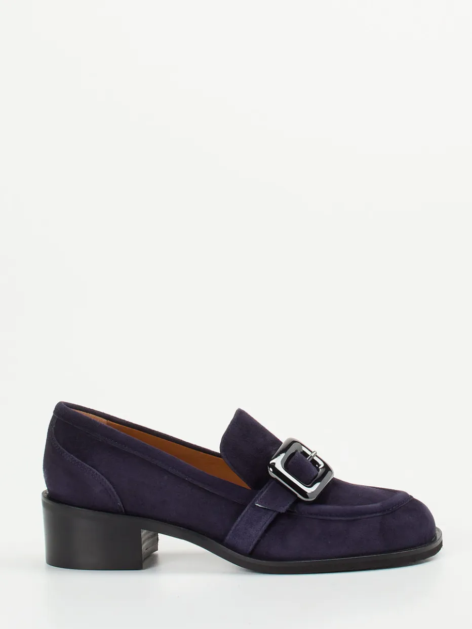 Zeitloser Allrounder mit modernem Twist.Andrea Puccini präsentiert einen stilvollen Damen-Loafer mit elegantem Charakter. Ideal für den Büroalltag oder gepflegte Freizeitlooks überzeugt das Modell durch tiefviolettes Veloursleder, das samtig-matt wirkt und eine edle Farbtiefe bietet. Die klassische, leicht kantige Silhouette erhält durch Details wie eine schwarze Metallschnalle und eine feine Mokassinnaht frische Akzente. Mit seinem weich gepolsterten Kalbleder-Innenfutter und dem 3,5 cm hohen Blockabsatz bietet er Komfort und Stil gleichermaßen. Der Schlupfschuh passt zur minimalistischen Garderobe und setzt im Quiet-Luxury-Trend ein dezentes Statement. Ein femininer Business-Schuh mit italienischer Designnote und hochwertiger Verarbeitung.