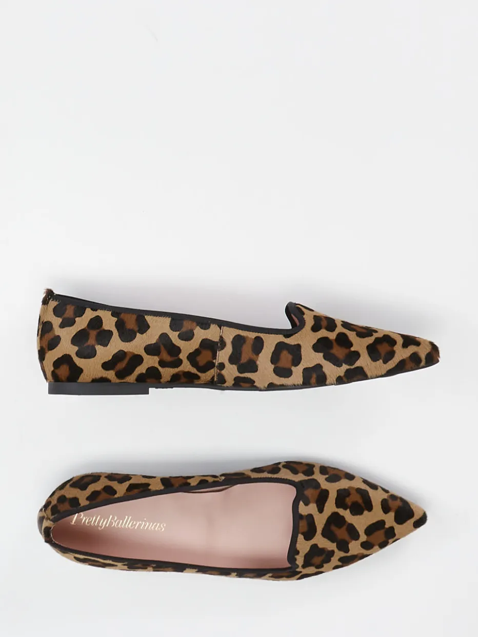 Feminin präsentiert sich dieser Slipper der Marke Pretty Ballerinas. Auf dem pointiert schlanken Leisten wirkt das wertige Fell in Leo-Optik attraktiv und schmückend. Der Einfass aus schwarzem Ripsband akzentuiert. Die alltagstaugliche, flache Gummisohle hat eine angenehm weiche Polsterung.
