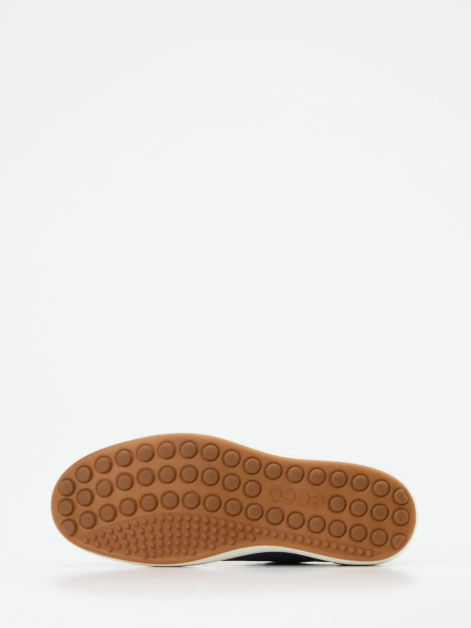 Ecco präsentiert einen Low-Top Sneaker für Herren, gefertigt aus dunkelblauem Kalbleder mit dezenter Prägung.
