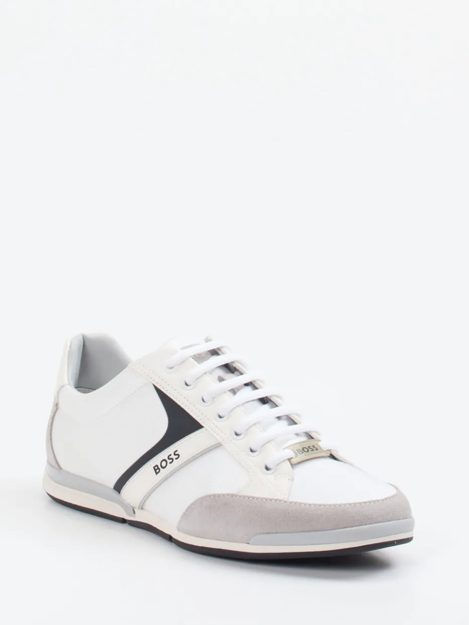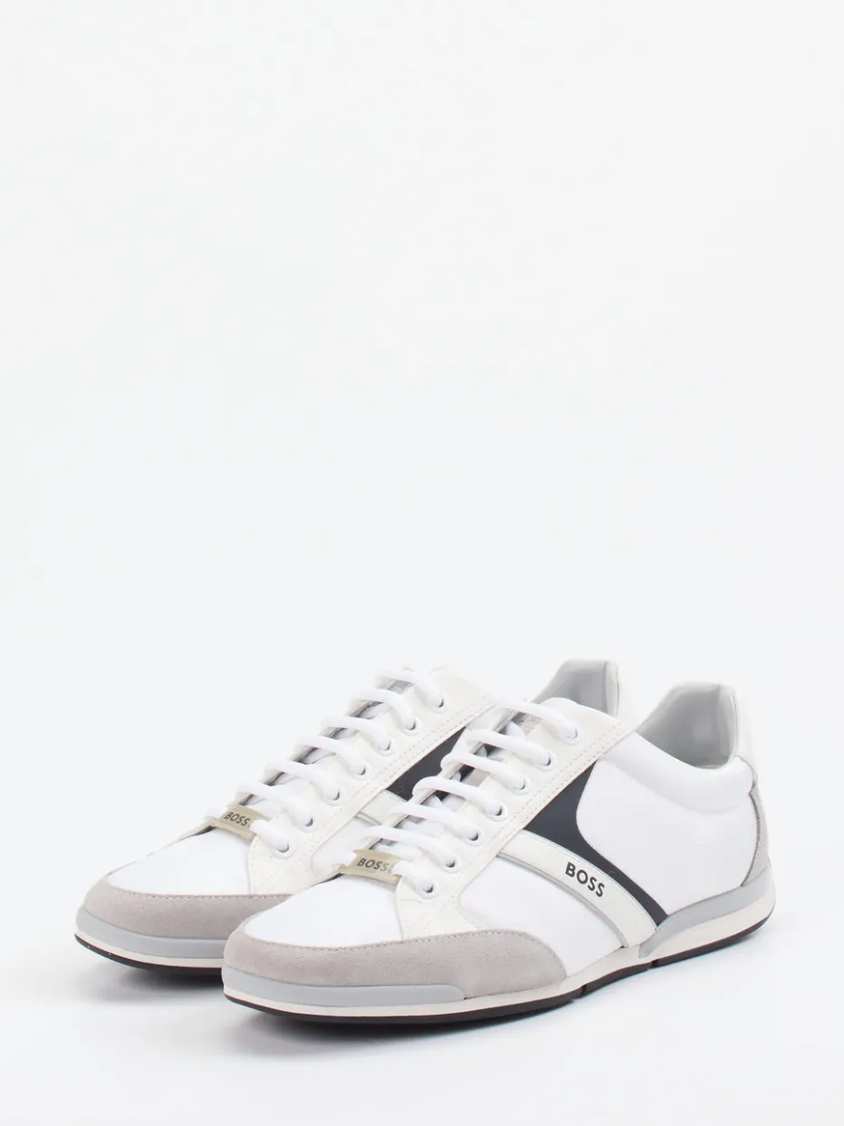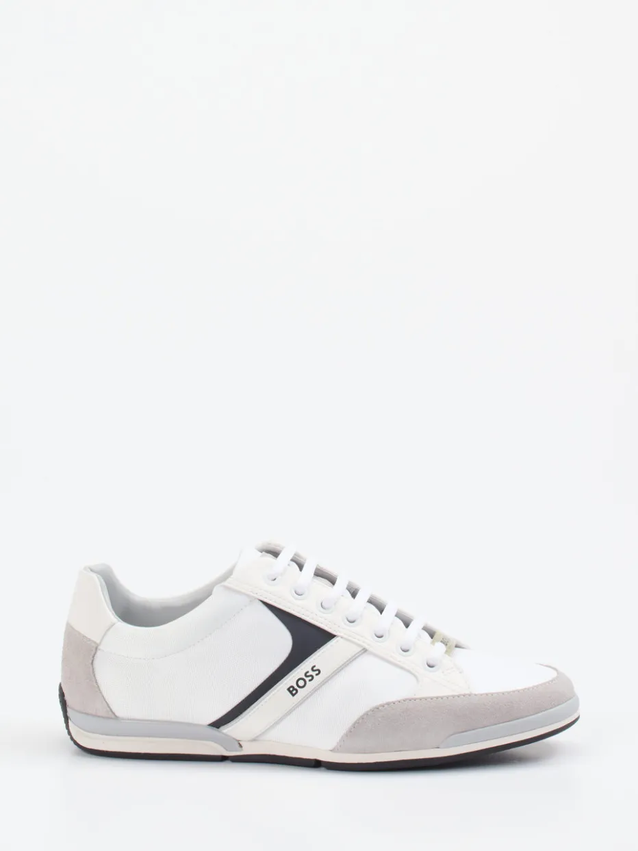 Sportlicher Purismus für den Alltag.Der Herren-Sneaker von Boss vereint modische Zurückhaltung mit hochwertiger Verarbeitung. Mit seinem weißen Kalbleder-Obermaterial, ergänzt um samtig angeschliffene Velourslederdetails an Spitze und Ferse, erfüllt er sommerliche Ansprüche an Leichtigkeit und Komfort. Die flache, schlanke Form wird durch einen kontrastfarbenen Seitenstreifen und dezentes Logo auf Lasche und Ferse betont. Schnürung, stabil-gummierte Sohle und ein schweißabsorbierendes Mesh-Futter garantieren Alltagstauglichkeit. Stilistisch inspiriert von Retro-Sportswear und minimalistischer Streetwear, passt er perfekt zu Chinos, Shorts oder leichten Bomberjacken. Ein vielseitiger Sneaker mit sportlich-elegantem Erscheinungsbild im typischen BOSS-Design.