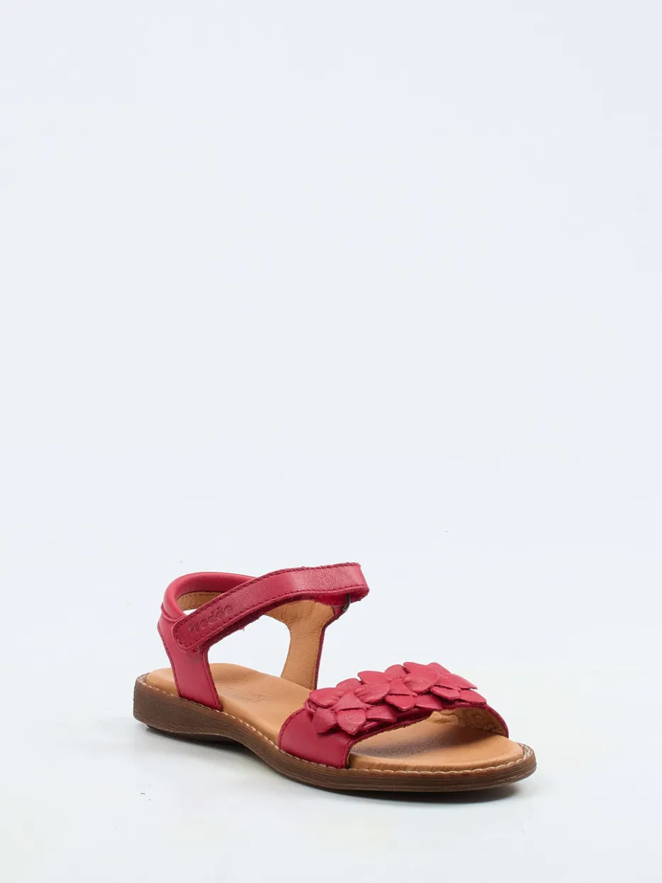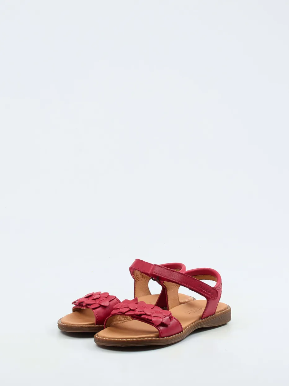 Blütenstark durch den Sommer.Froddo präsentiert diese verspielten Mädchensandalen für den Alltag und die Ferienzeit. Das weiche Kalbleder zeigt sich in kräftigem Kirschrot mit matter Oberfläche und ziert sich mit einer feinen Blütenapplikation. Die offene, flache Form mit zwei individuell verstellbaren Klettverschlüssen sorgt für optimalen Halt und kinderleichtes Anziehen. Ein gepolstertes Lederfußbett und die flexible, durchgenähte Gummisohle mit rutschhemmendem Profil unterstützen Komfort und Trittsicherheit. Die romantische Optik passt perfekt zur aktuellen Kindermoden-Saison mit floralem Fokus. Froddo verbindet robuste Alltagstauglichkeit mit trendbewusstem Design für kleine Entdeckerinnen.