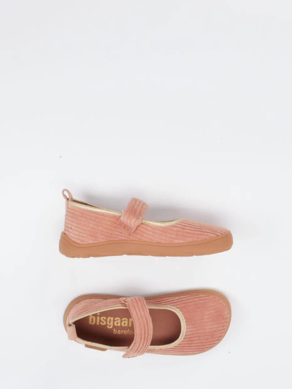 Skandinavischer Komfort für kleine Füße.Bisgaard zeigt mit diesem Mary-Jane-Kletthausschuh im Cord-Look, wie stilvolle Entspannung für Kinderfüße funktioniert. Die samtig gerippte Textiloberfläche in Koralle sorgt zusammen mit dem weichen Textilfutter für ein wohliges Tragegefühl. Die flache Silhouette, der praktische Klettverschluss sowie die Zuglasche hinten machen das An- und Ausziehen kinderleicht. Die flexible Gummisohle mit floraler Struktur fördert ein barfußnahes Laufgefühl und gibt sicheren Halt – perfekt für Alltag oder Zuhause. Goldfarbene Details und sichtbare Steppnähte unterstreichen den skandinavisch inspirierten Look. Ein funktionaler Lieblingsschuh im Soft-Colors-Trend mit liebevollen Akzenten – typisch Bisgaard.
