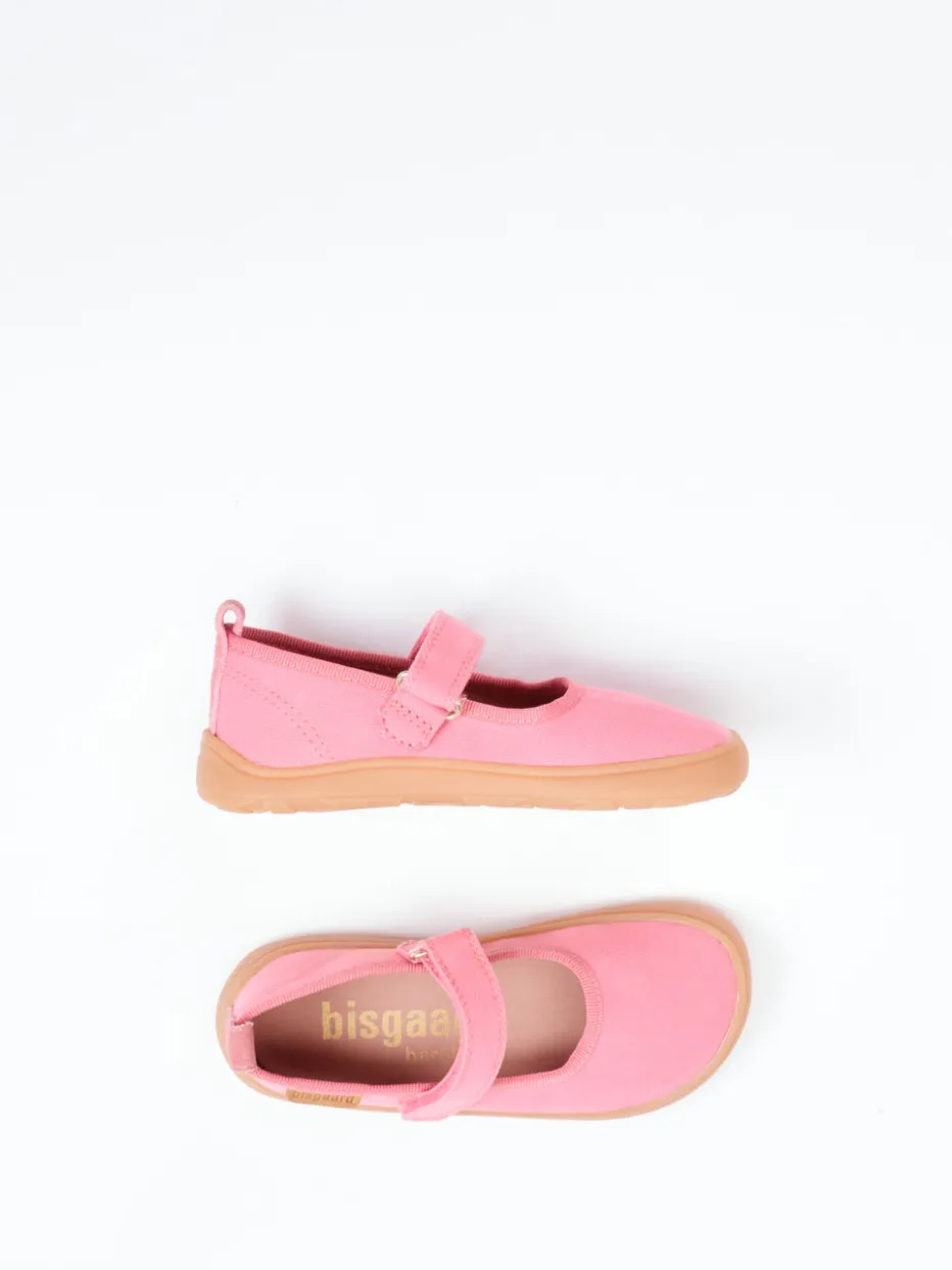 Leichtigkeit für kleine Entdeckerinnen.Der Mary-Jane-Hausschuh von Bisgaard begleitet den Alltag junger Mädchen stilvoll und bequem. Beim Spielen im Wohnzimmer oder auf dem Kita-Korridor sorgt die rutschhemmende Gummisohle für sicheren Halt. Das rosa eingefärbte Textil-Obermaterial aus griffigem Canvas punktet mit matter Optik und ist durch die Zuglasche sowie einen praktischen Klettverschluss besonders leicht an- und auszuziehen. Die flache, runde Form sowie dezente Details wie das Label-Patch und die strukturierte Blattsohle betonen den reduzierten, skandinavischen Look. Als Pastellton bringt das Rosa einen frischen Trendakzent in die Frühjahrsgarderobe. Kindermode in bewegungsfreundlicher Formensprache – typisch Bisgaard.