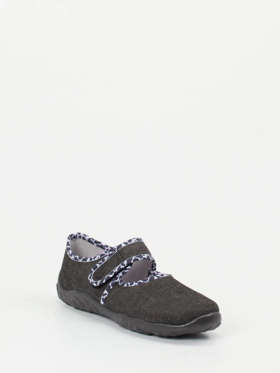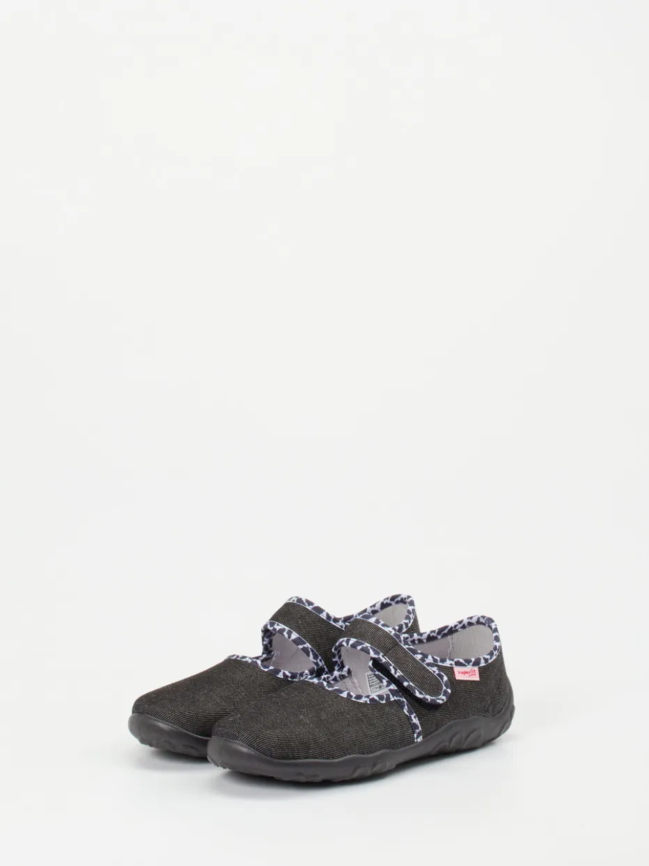 Für entspannte Kinderfüße im Alltag.Superfit präsentiert einen gemütlichen Mary Jane Hausschuh für Kinder. Wenn zuhause viel getobt und gespielt wird, sorgt dieser Hausschuh für maximalen Komfort. Das weiche Textilobermaterial in Anthrazit trifft auf einen gepolsterten Einstieg mit grafisch gemusterter Paspel. Der praktische Klettverschluss ermöglicht ein einfaches Handling, das textile Futter schafft ein angenehmes Fußklima. Die flexible PU-Laufsohle mit floraler Prägung ist an den Seiten hochgezogen und bietet leichten Stoßschutz. Der Look greift minimalistische Designansätze auf und lässt sich ideal mit bequemen Hausoutfits oder Kuschelsocken kombinieren. Ein rundum durchdachter Wohlfühlschuh mit Superfit-Komfort für drinnen.