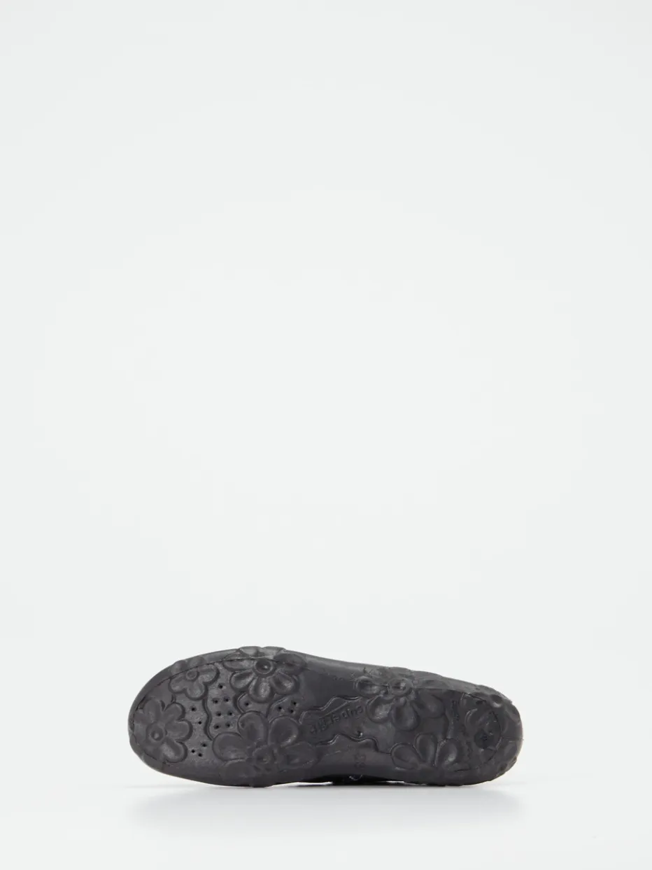 Dieser Superfit-Hausschuh vereint hohen Tragekomfort mit liebevollen Details wie der floralen Sohle und grafischen Paspelierung – perfekt für entspannte Kindermomente zuhause.