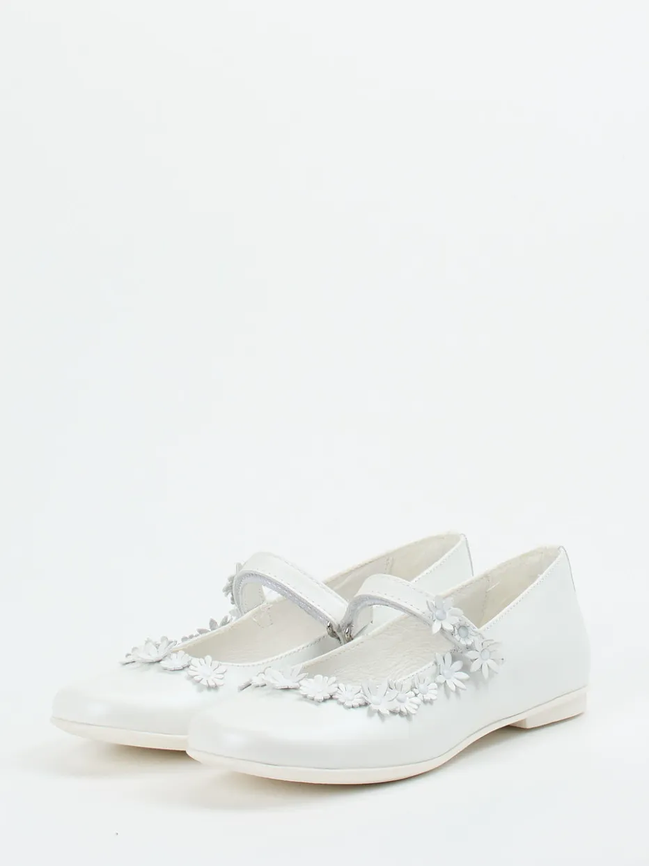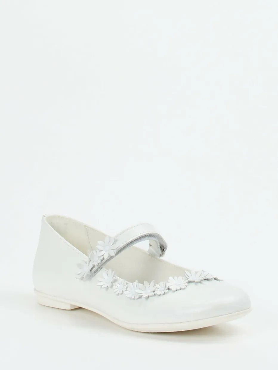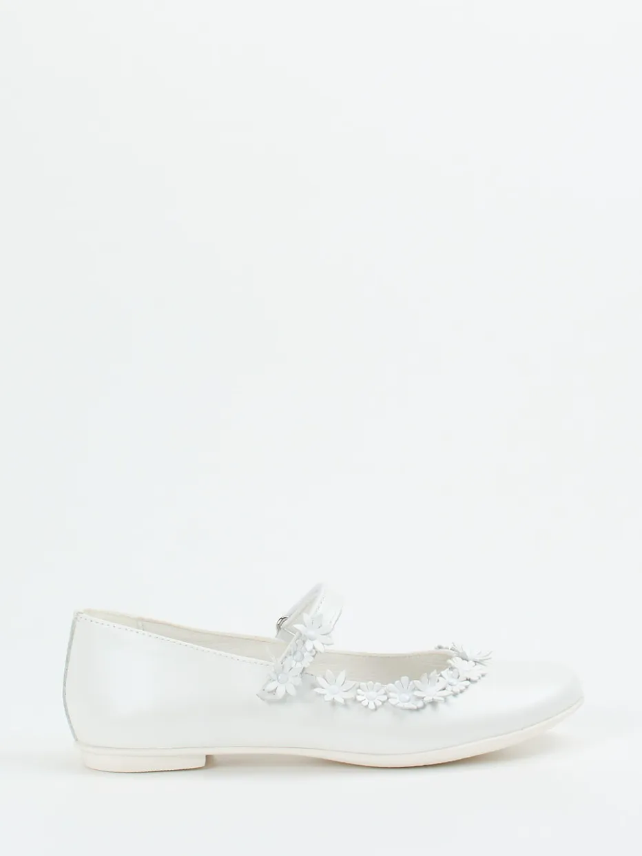 Romantischer Look für feierliche Momente.Primigi präsentiert elegante Kinder-Mary-Janes mit festlichem Charakter. Ob bei Hochzeiten, Kommunionen oder Familienfesten – diese Spangenballerina bietet stilvollen Tragekomfort. Aus perlweißem Kalbleder gefertigt und mit glänzender Oberfläche ausgestattet, hebt sich das Design durch detailverliebte 3D-Blumen entlang des Ausschnitts hervor. Der klassische Schnitt mit flacher Silhouette und Klettverschluss ermöglicht unkompliziertes Anziehen. Eine herausnehmbare, anatomisch geformte Decksohle unterstützt Kinderfüße zusätzlich. Das klare Design verbindet romantische Vintage-Elemente mit moderner Eleganz und passt perfekt zu Kleidern und weißen Strumpfhosen. Hochwertige Verarbeitung trifft auf italienische Leichtigkeit – typisch Primigi.