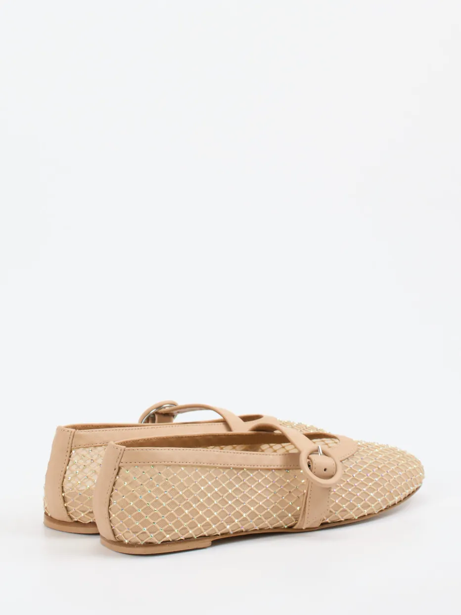 Zarte Mary Janes mit schimmerndem Mesh und elegantem Riemen vereinen sommerliche Leichtigkeit mit zeitgemäßem Minimalismus.