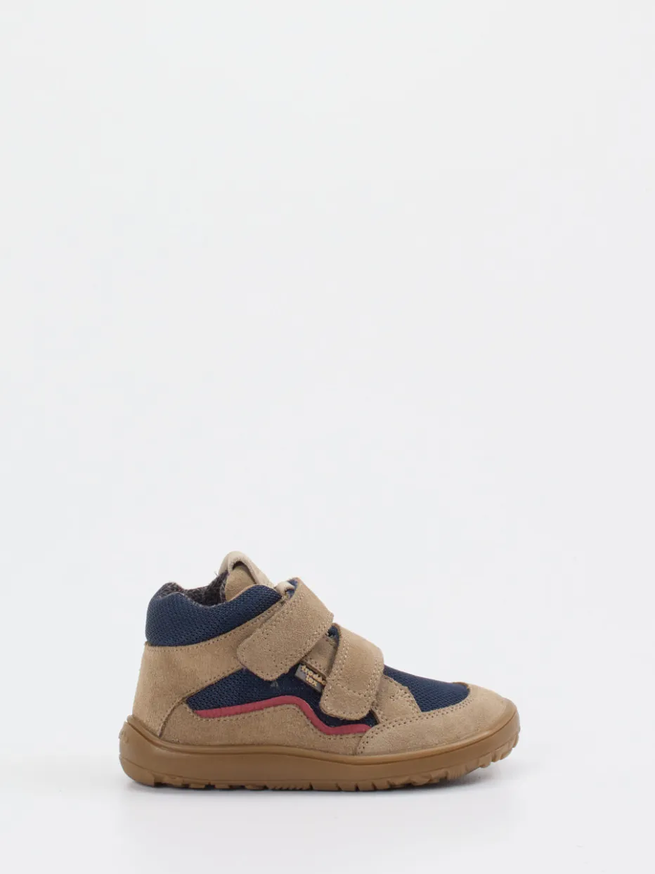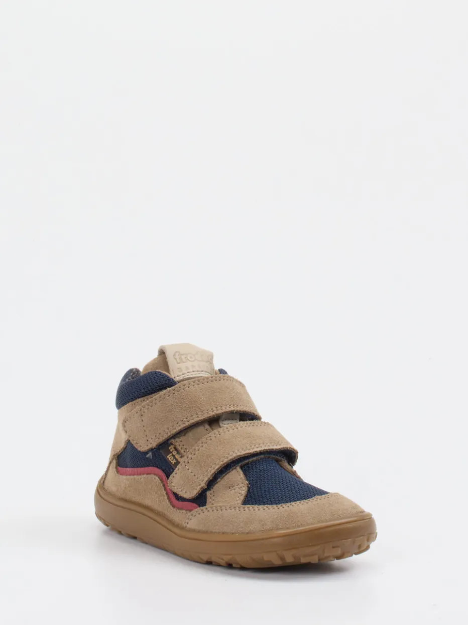 Für aktive Tage in Schule und Freizeit.Froddo präsentiert mit diesem Mid-Cut-Sneaker einen kindgerechten Begleiter für jeden Tag. Wenn draußen gespielt oder ein aufregender Ausflug geplant ist, hält dieses Modell Schritt. Gefertigt aus Veloursleder mit samtiger Haptik und texturiertem Mesh, bietet es Halt und Atmungsaktivität in Einem. Die tonige sandbeige Farbgebung wird durch dunkelblaue und dunkelrote Kontraste akzentuiert. Auffällig sind die doppelten Klettverschlüsse und die griffig profilierte Gummisohle. Die runde Silhouette mit gepolstertem Schaft verspricht Komfort, während Design-Details wie Logo-Prägungen einen markentypischen Akzent setzen. Ideal kombinierbar mit Outdoorjacke und Rucksack. Kindgerecht durchdacht – Froddo steht für Qualität, Komfort und Stil im Alltag.