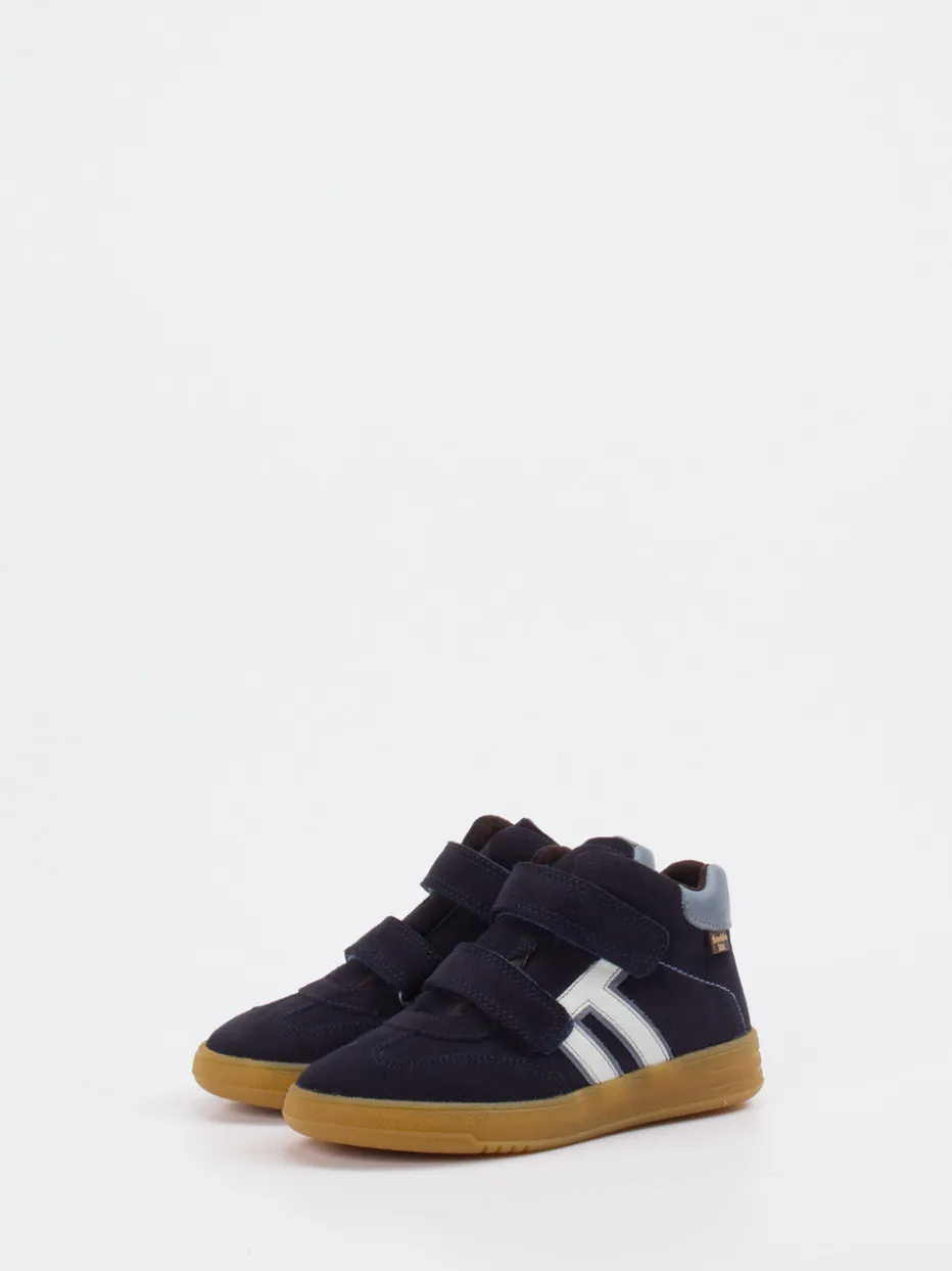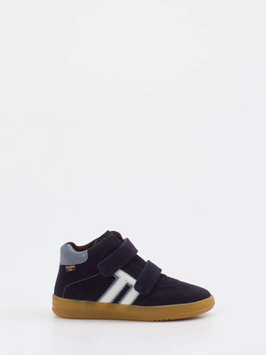 Stilvoll und funktional für jeden Kinderschritt.Froddo präsentiert mit diesem Mid-Top Sneaker ein komfortables Modell für Kinder. Ideal für Action im Alltag und entspanntes Toben: Das dunkelblaue Veloursleder mit matter Oberfläche verleiht dem Schuh einen dezenten Streetwear-Twist. Die knöchelhohe Form stabilisiert kleine Füße, während der doppelte Klettverschluss das An- und Ausziehen erleichtert. Der verstärkte Fersenbereich sorgt für zusätzlichen Halt. Die rutschfeste Gummisohle ist besonders griffig, das Innenfutter aus Textil trägt sich angenehm. Hellblaue Kontrastdetails setzen modische Akzente – perfekt zur Übergangsjacke oder Jeans kombinierbar. Froddo steht für kindgerechtes Design mit langlebigem Komfort.