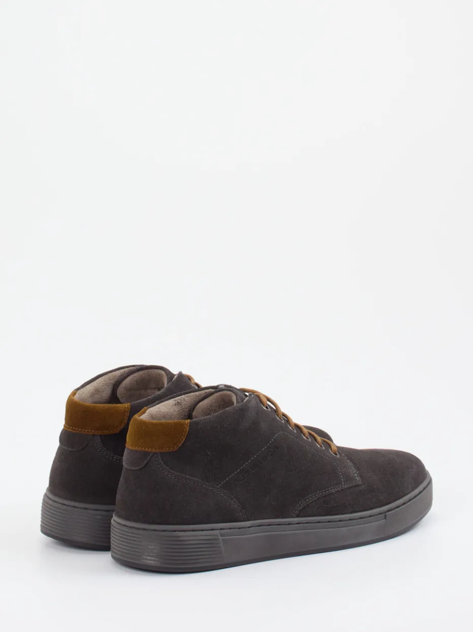 Der Mid-Top-Sneaker vereint hochwertiges Veloursleder mit urbaner Funktionalität. Farblich dezent und mit klarer Formsprache überzeugt er als lässiger Begleiter im Herbstalltag.
