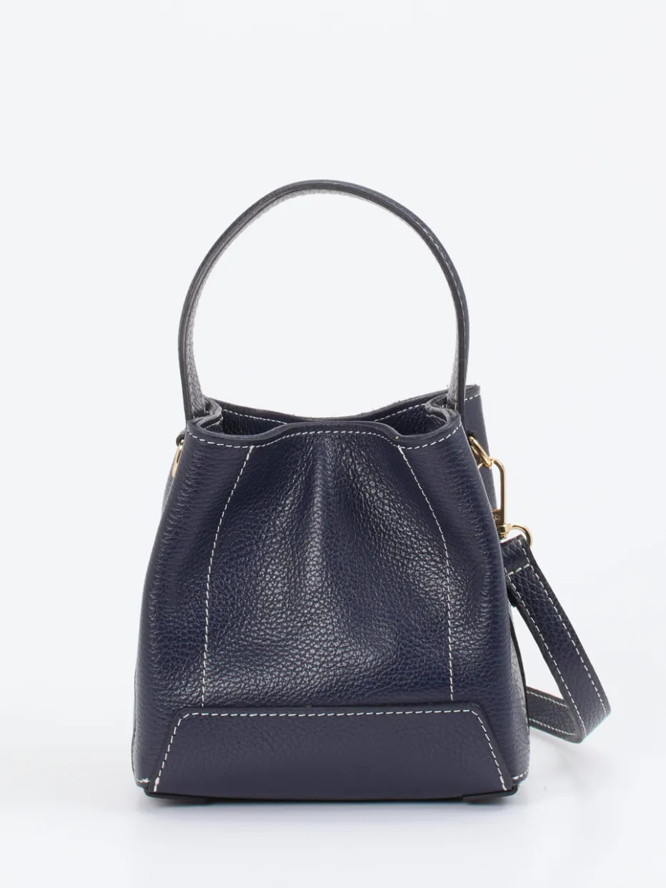 Einfach bezaubernd ist diese Minitasche der italienischen Marke Marlon Firenze. Das nachtblaue Kalbleder wird zusammen mit der filigranen Beutelform zum modischen Hingucker. Der Innenraum ist in zwei Teile aufgeteilt und enthält ein zusätzliches Reißverschlussfach. Bei Bedarf kann der Schulterriemen abgenommen werden. Starten Sie modisch durch mit dieser Minitasche – egal ob tagsüber beim Stadtbummel oder im Nachtleben! – Material: Kalbleder – Farbe: Nachtblau – Maße: 15 x 15 x 8 (H x B x T) – Schulterriemen: ca. 100 cm, verstell- und abnehmbar – Verschluss: Druckknöpfe