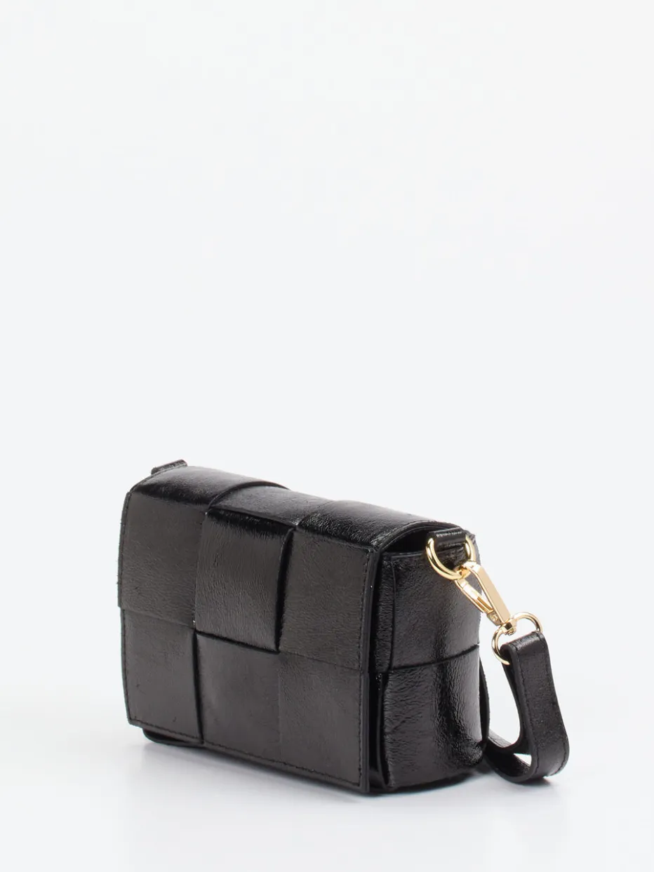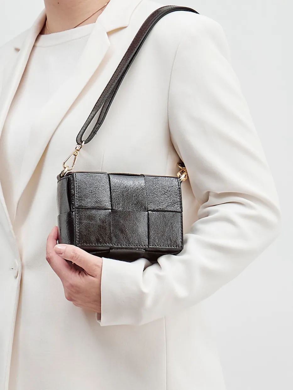 Ein attraktiver Allrounder ist diese Minitasche der Marke Marlon Firenze! Das Obermaterial aus hochwertigem Kalbleder im Metallic-Look mutet dezent retro an. In Schwarz gehalten, lässt es sich perfekt kombinieren. Der geflochtene Look unterstreicht den Charme des Models. Wie Sie die Tasche tragen, bleibt übrigens Ihnen überlassen: als Clutch oder doch mithilfe des eleganten Riemens über der Schulter. Ein perfektes Accessoire für viele Gelegenheiten! – Obermaterial: Kalbleder – Farbe: Schwarz – Größe: ca. 10 x 15 x 6 cm (H x B x T) – Schulterriemen: ca. 100 cm – Verschluss: Druckknopf