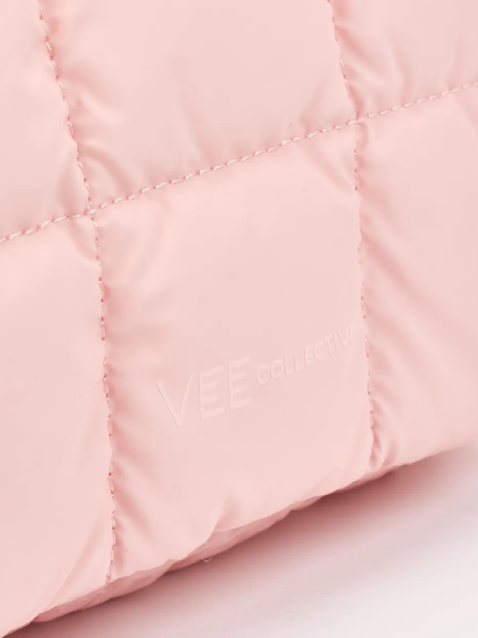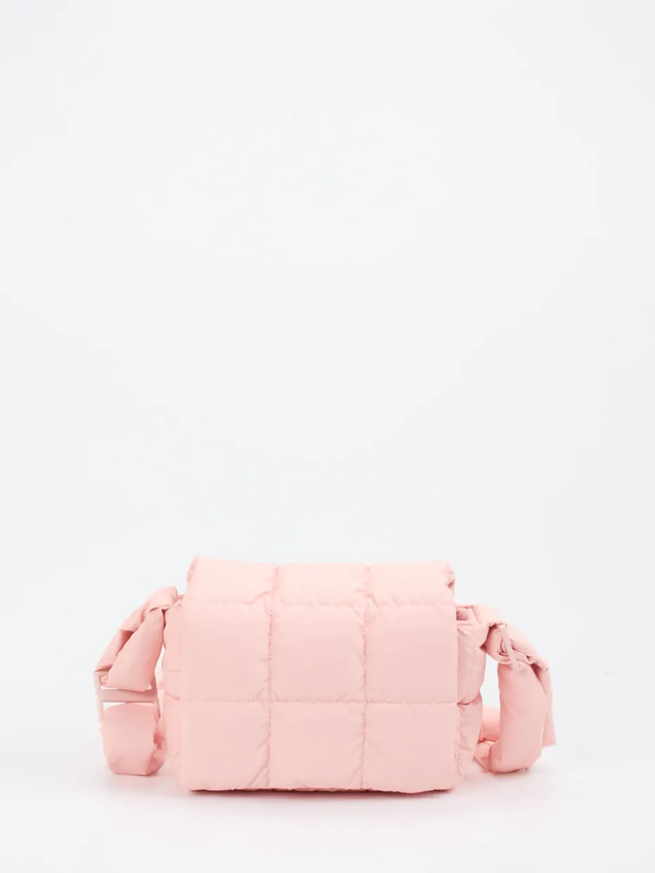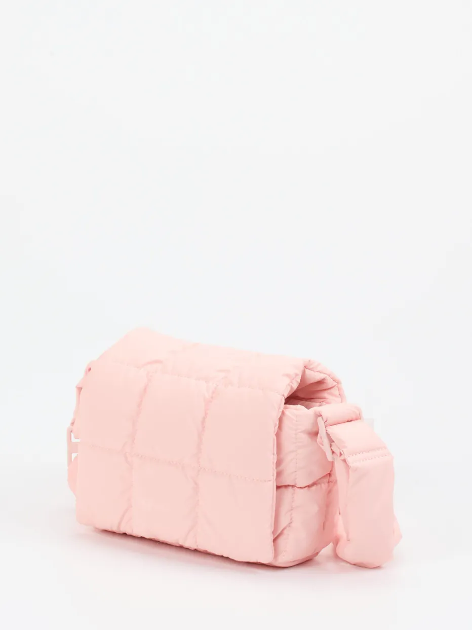 Diese gepolsterte Schultertasche kombiniert urbanen Streetstyle mit nachhaltigem Design. Ihr ultraleichtes, recyceltes Nylon fühlt sich angenehm soft an und glänzt im Trendton Blassrosa.