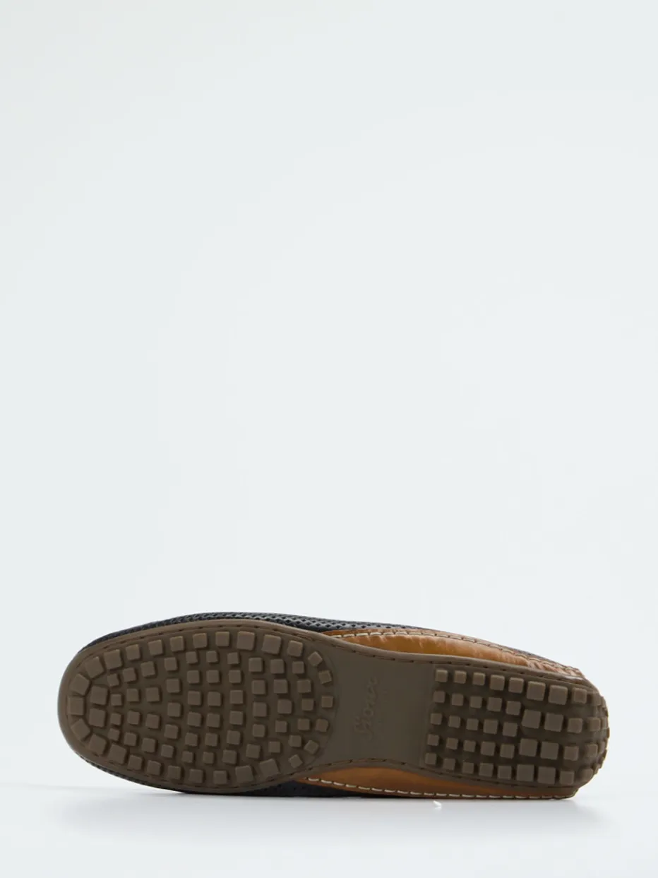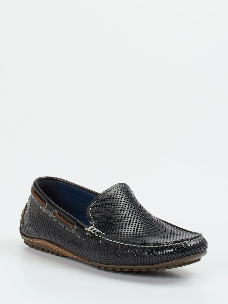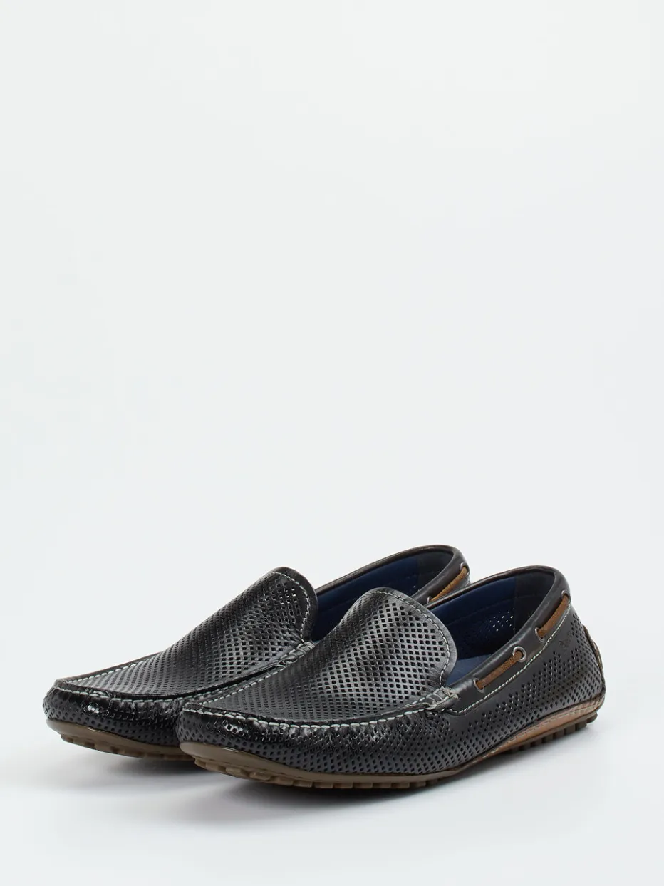 Sommerlicher Herren-Mokassin in Schwarz mit luftiger Perforation und komfortabler Profilsohle. Ideal für stilvolle Freizeitlooks mit mediterraner Note.