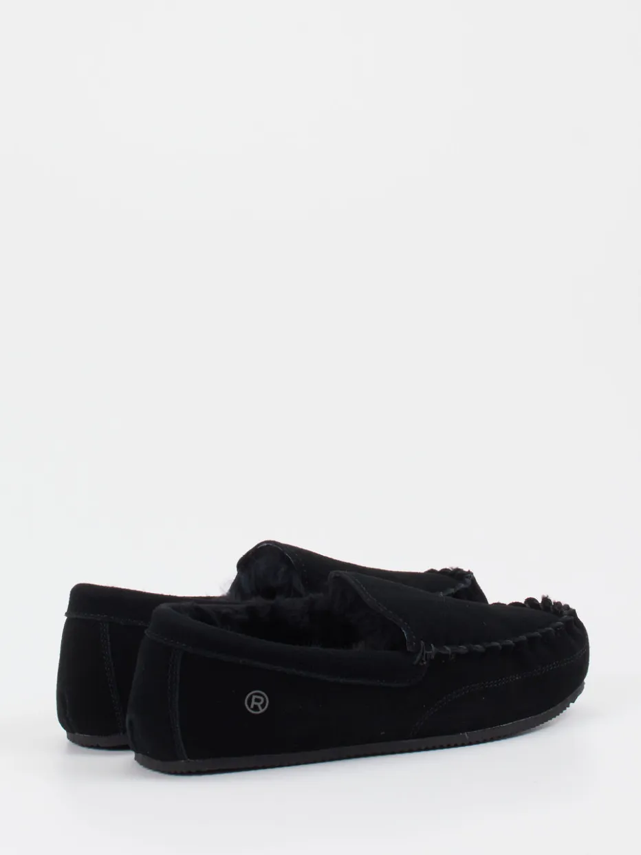 Dieser Mokassin-Slipper von Rohde vereint klassisches Design mit modernen Komfortfeatures wie warmem Lammfellfutter und rutschhemmender Gummisohle.