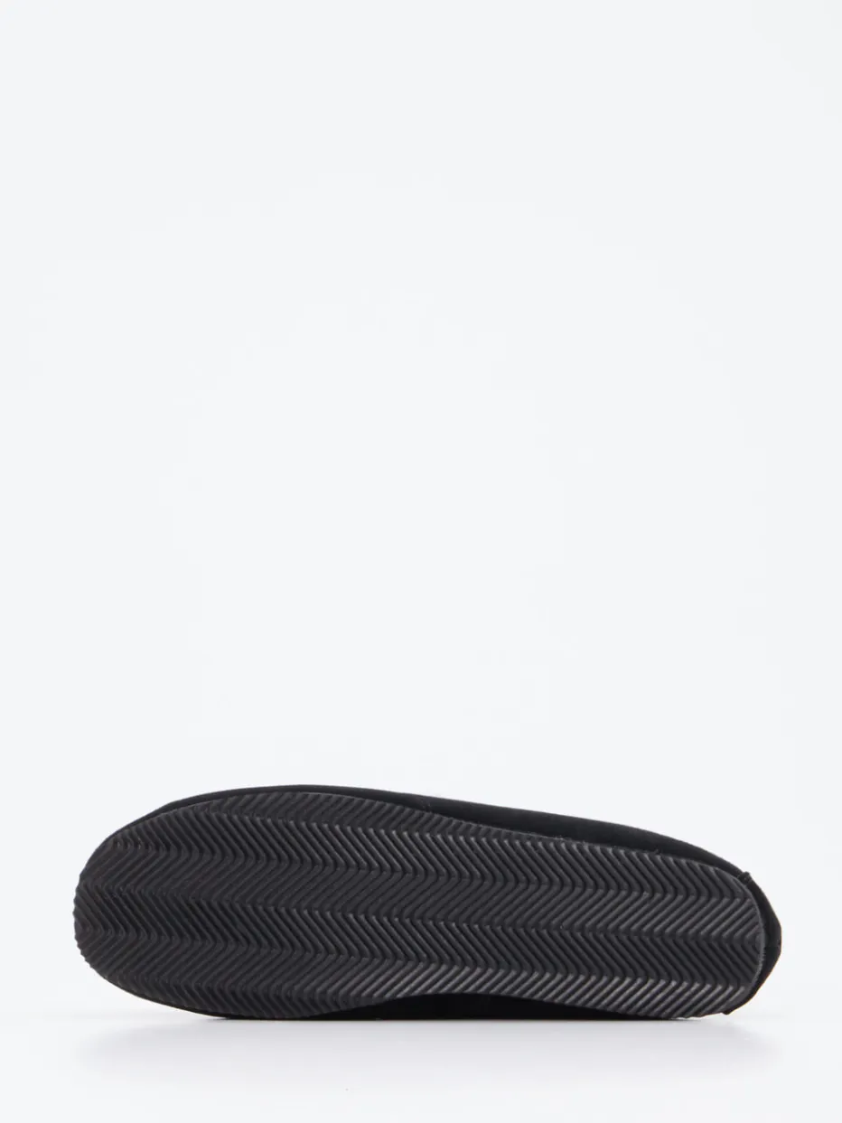 Wärme trifft aufs Wesentliche.Dieser Hausschuh der Marke Rohde zählt zur Kategorie der Mokassin-Slipper und besticht durch eine klassisch flache Silhouette. Ideal für entspannte Stunden daheim bietet das Modell aus hochwertigem Veloursleder mit samtig-matter Haptik ein besonders kuscheliges Trageerlebnis – dank vollständig grauem Lammfellfutter. Das schwarze Design präsentiert sich unifarben mit tonalen Nähten und charakteristischer Mokassin-Nahtführung. Die widerstandsfähige Gummisohle mit Fischgrät-Struktur sorgt für Rutschhemmung und erlaubt auch kurze Wege außerhalb der eigenen vier Wände. Minimalistische Ästhetik trifft „Cozy Comfort“ – ein stilvolles Loungewear-Update für Komfortliebende. Mit durchdachtem Aufbau und natürlichem Materialeinsatz steht dieser Slipper für authentische Wohlfühlqualität aus dem Hause Rohde.