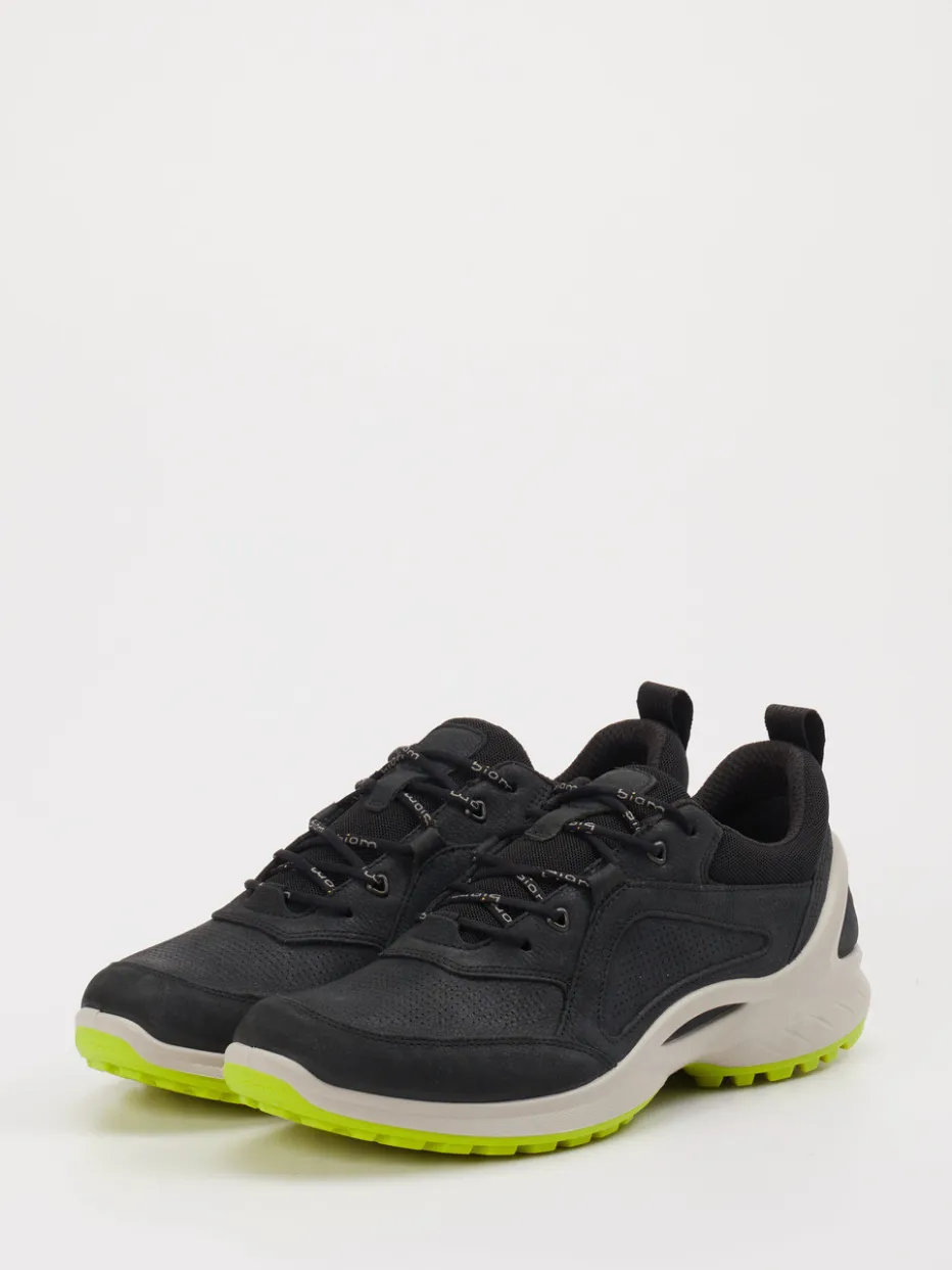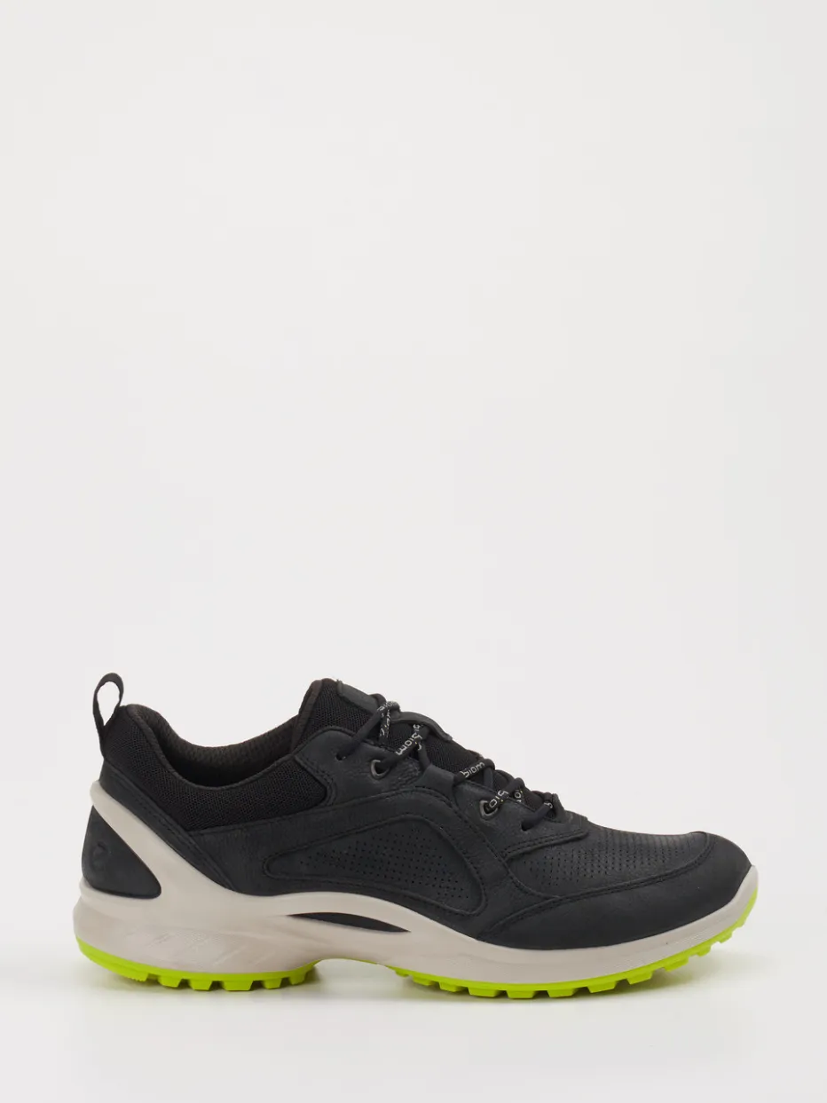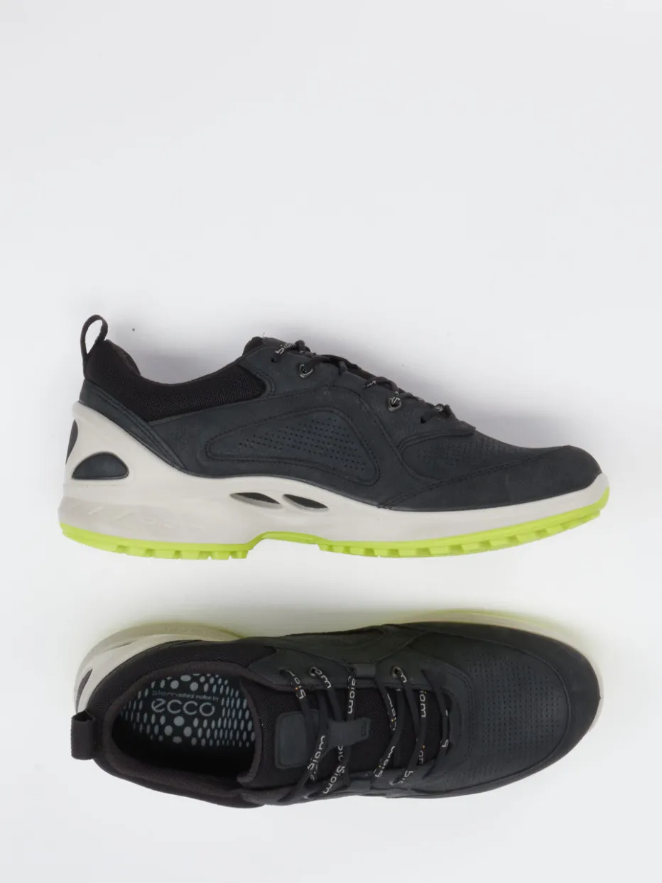Ecco präsentiert einen Sneaker für Outdoor-orientierte Looks und aktive Alltagsmomente. Sportlich-dynamisch in der Form, überzeugt das Modell durch ein Obermaterial aus glattem Kalbleder mit atmungsaktiven Mesh-Einsätzen. Die dominante Farbe Schwarz wird durch eine auffällige neonfarbene Sohle kontrastiert, reflektierende Details setzen visuelle Akzente. Eine griffige Profilsohle, gepolsterter Einstieg und Zuglasche sorgen für Komfort und sicheren Tritt – ideal für Trendwelten wie Gorpcore und Color-Blocking. Perfekt zu Funktionsjacke und Rucksack kombinierbar. Ecco vereint zeitgemäßen Outdoor-Style mit langjähriger Schuhkompetenz.