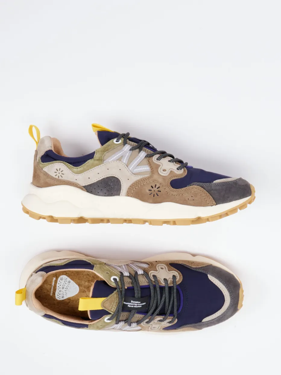 Trail trifft Street-Style.Der Sneaker von Flower Mountain vereint urban inspiriertes Design mit funktionaler Outdoor-Tauglichkeit. Bei Spaziergängen durch die Stadt oder leichten Wanderungen überzeugt das Modell mit seinem Obermaterial-Mix aus Textil und samtig angeschliffenem Veloursleder. Das Farbspiel aus Dunkelblau, Taupe und Senfgelb wirkt modern, während reflektierende Elemente und Kontrastnähte für Sichtbarkeit und Struktur sorgen. Eine voluminöse Silhouette, gepolsterter Einstieg und die robuste Profilsohle mit Dreiecksstruktur sichern Komfort und Grip. Farbverlauf, Zuglaschen und das atmungsaktive Mesh-Futter betonen den Gorpcore-Trend der Saison. Stilistisch eigenständig und funktional – mit charaktervollem Trail-Appeal von Flower Mountain.