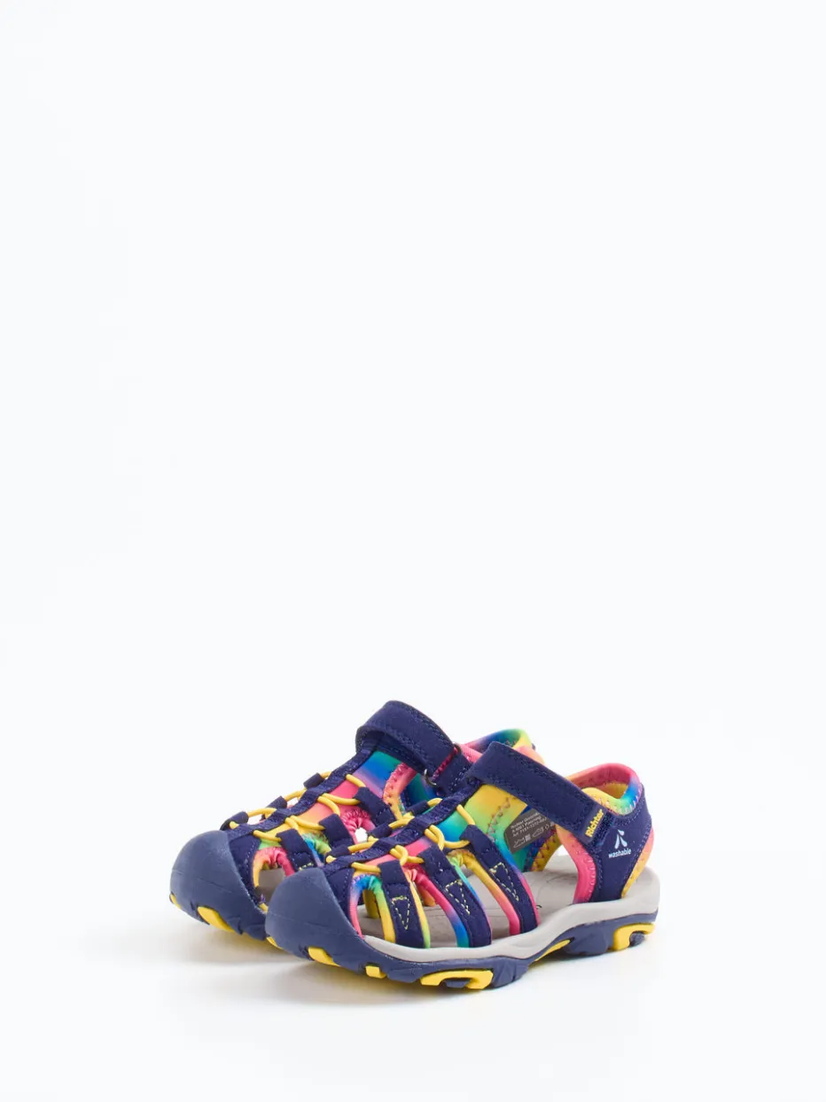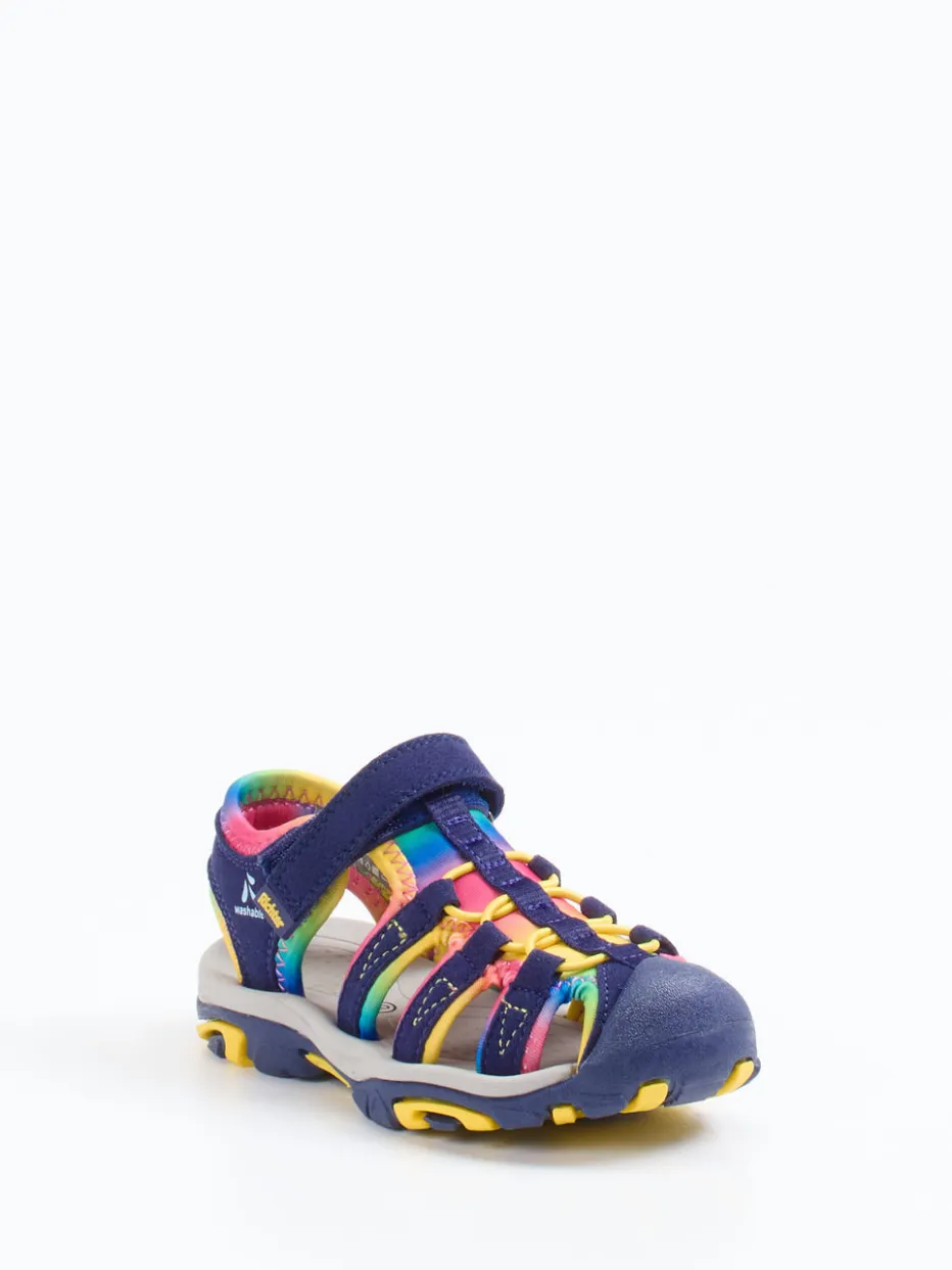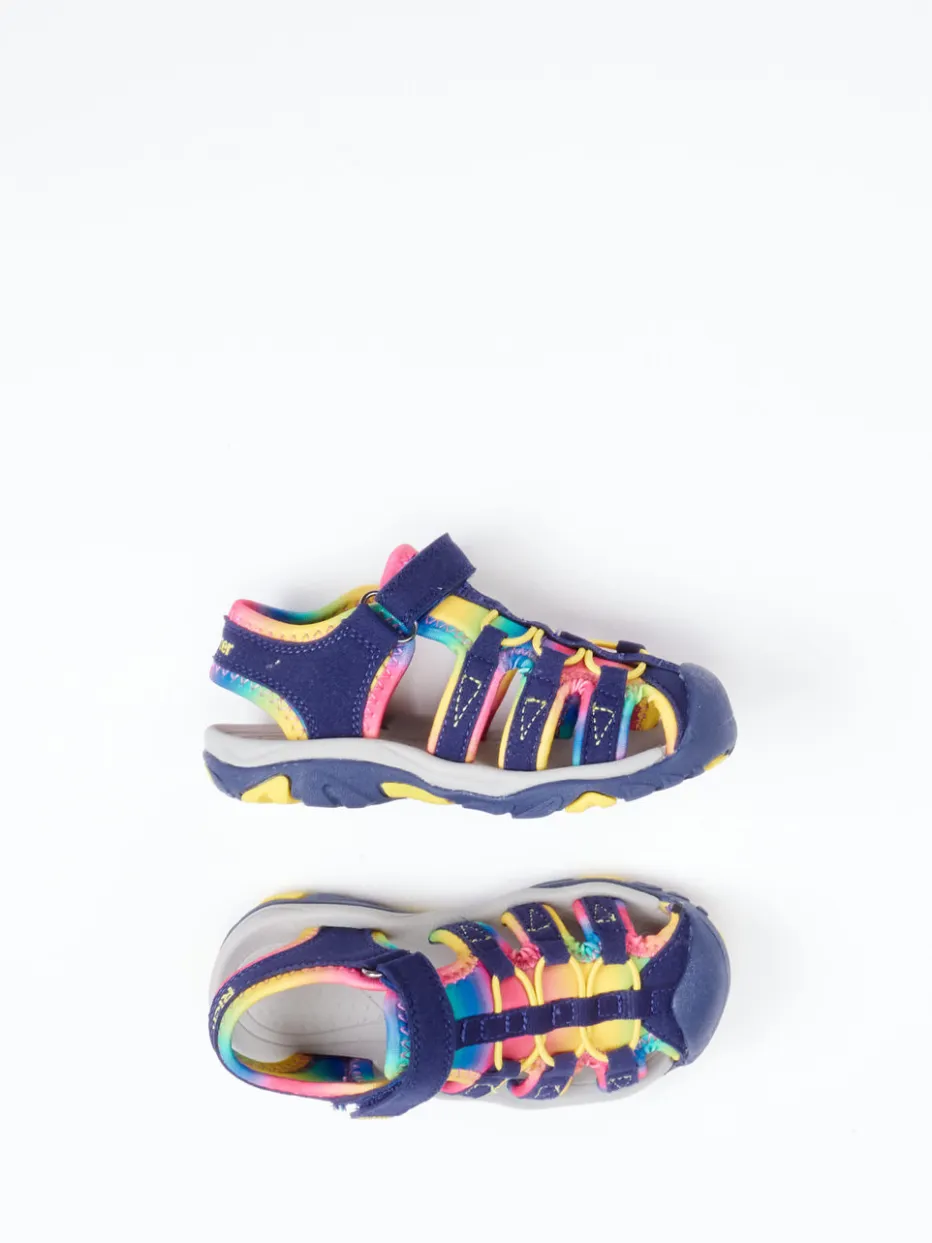 Multicolor-Design, robustes Material und funktionales Detail-Layout machen diese Kindersandale zum sommerlichen Outdoor-Partner mit Stil.