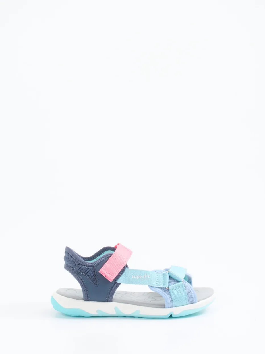 Für unbeschwerte Sommertage auf Spielplatz und Reisen.Die Kindersandalen von Superfit vereinen Komfort und Funktion im sommerlichen Design. Das hellblaue Textilmaterial mit matter Oberfläche ist durch marine- und korallfarbene Akzente sportlich color-blocked inszeniert. Die offene, ergonomisch geschnittene Silhouette mit Klettverschlüssen und gepolstertem Fersenbereich sorgt für hohen Tragekomfort und sicheren Halt. Dank der Gummisohle mit rutschhemmendem Profil bleiben Kinder auch auf unebenem Untergrund stabil. Die pflegeleichte, schnelltrocknende Verarbeitung macht sie zur idealen Urlaubsbegleitung. Besonders harmonisch wirkt der Look zu UV-Shirts oder bunten Shorts. Superfit bietet hier farbintensive Alltagstauglichkeit für kindgerechtes Abenteuergefühl.