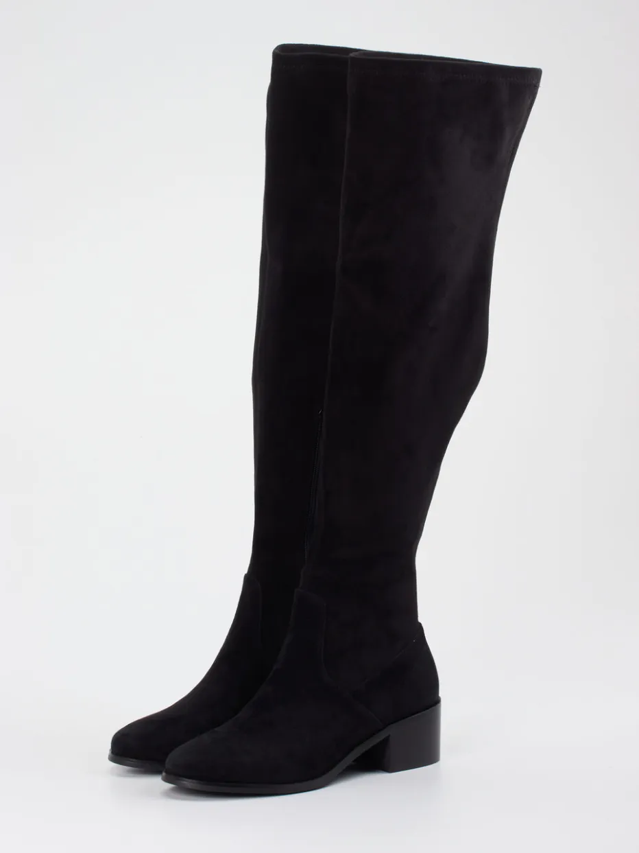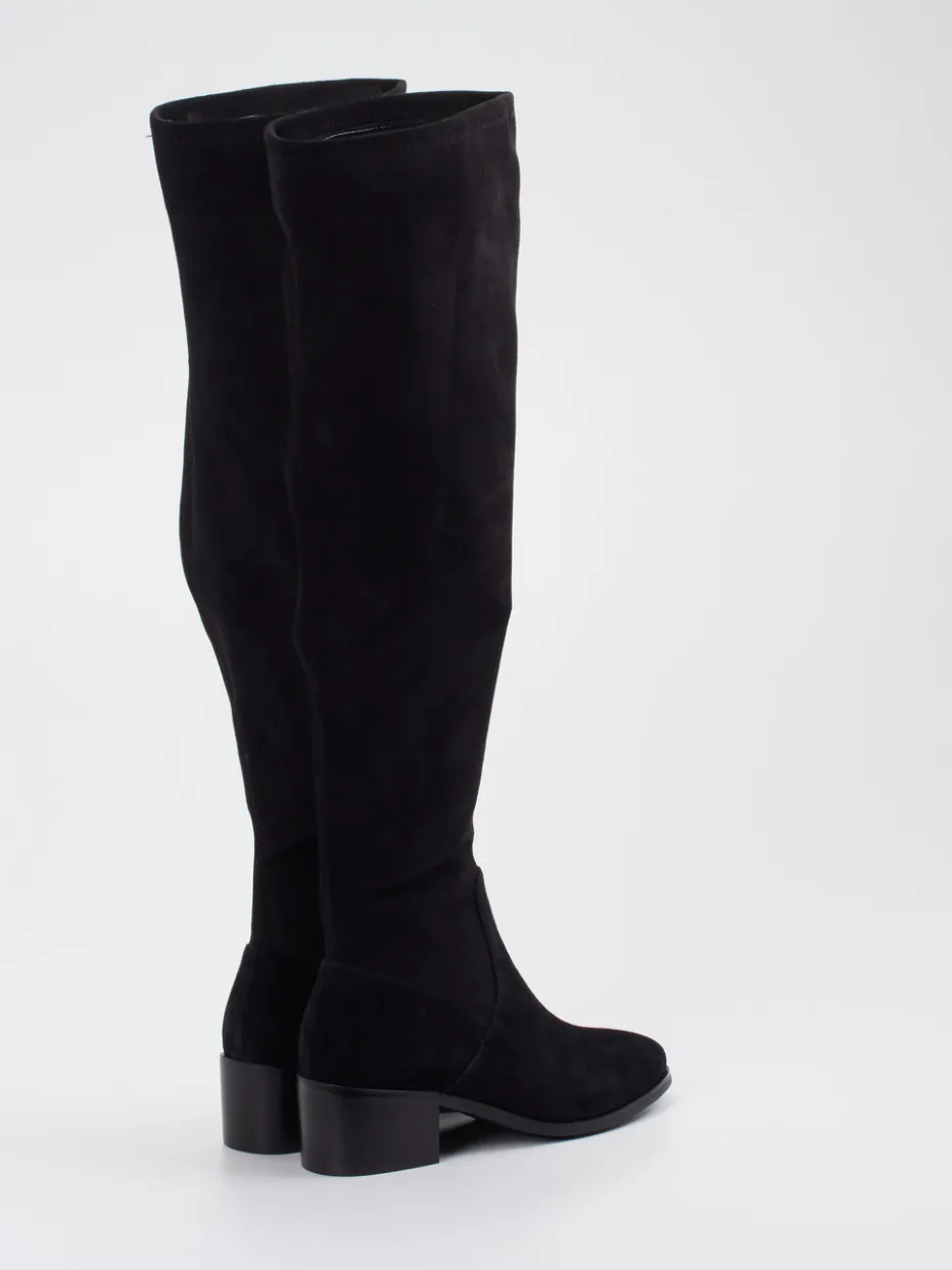 Dieser Overknee-Stiefel vereint weiches Veloursleder mit einer schlanken Linienführung und minimalistischem Design – perfekt für stilbewusste Kombinationen von Casual bis Chic.