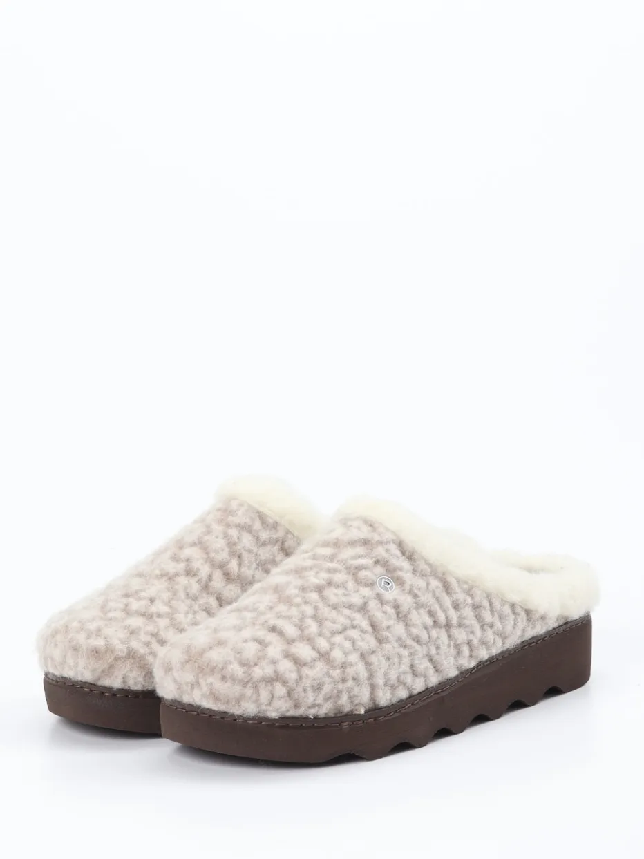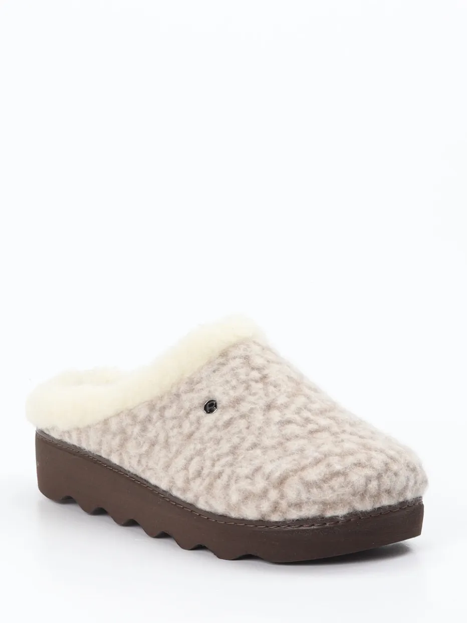 Dieser Hausschuh vereint weichen Wollfilz mit flauschigem Futterrand und vermittelt pure Gemütlichkeit. Die profilierte Sohle bietet Stabilität auf glatten Untergründen.