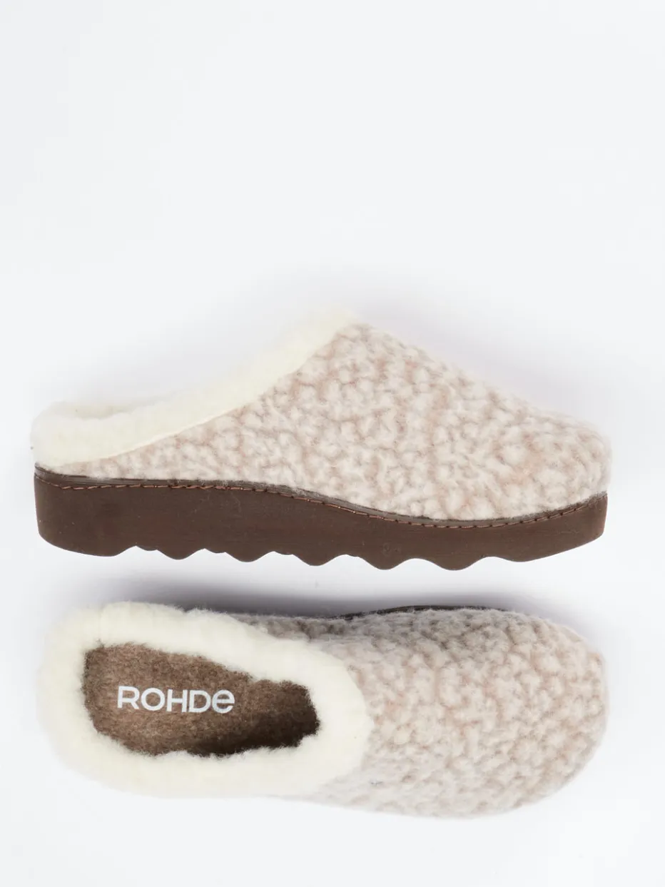 Gemacht für stille Stunden.Der Pantoffel aus dem Hause Rohde kombiniert Komfort und klassisches Design für entspannte Momente daheim. Ideal für kalte Böden oder gemütliche Abende im Hygge-Stil: Der hochwertig verarbeitete Hausschuh besteht aus naturbelassenem Wollfilz in einem eleganten Beigegrau mit wollig-weicher Haptik. Der offene Fersenbereich ermöglicht ein schnelles Hineinschlüpfen, während der kontrastierende Schaftrand aus Lammfell-Imitat nicht nur visuell überzeugt, sondern auch besonders weich am Fuß liegt. Die dunkelbraune, profilierte Gummisohle sorgt für sicheren Halt bei jedem Schritt – auch auf glatten Untergründen. Perfekt kombinierbar mit Homewear und Kuschelsocken. Wärme und Komfort in reduzierter Ästhetik – Rohde-typisch zuverlässig.