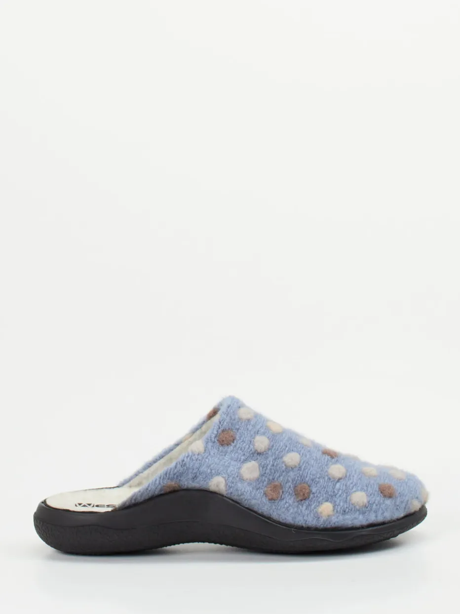 Westland präsentiert Damenpantoffeln aus hochwertigem Wollfilz in hellblauem Ton. Die geschlossene Pantoffelform mit offenem Fersenbereich eignet sich ideal für gemütliche Stunden daheim.