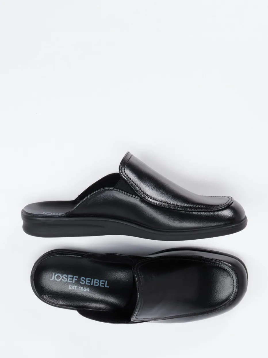 Schlichte Eleganz trifft Komfort.Josef Seibel Relax präsentiert klassische Herren-Pantoffeln aus Kalbleder. Ideal für ruhige Stunden zu Hause, überzeugt dieses Modell durch hochwertige Verarbeitung und höchsten Tragekomfort. Das schwarz glänzende Kalbleder wirkt edel und dezent zugleich und sorgt mit ergonomischer Gummisohle und weich gepolsterter Innensohle für angenehmes Gehen auf allen Untergründen. Die geschlossene Front und der offene Fersenbereich ermöglichen einen bequemen Einstieg. Reduzierte Ton-in-Ton-Nähte und textile Fütterung unterstreichen die komfortorientierte Handschrift des Designs. Ein zurückhaltender Look, der perfekt zum Loungewear-Trend der Saison passt. Ein entspannter Begleiter mit Premium-Komfortanspruch von Josef Seibel Relax.