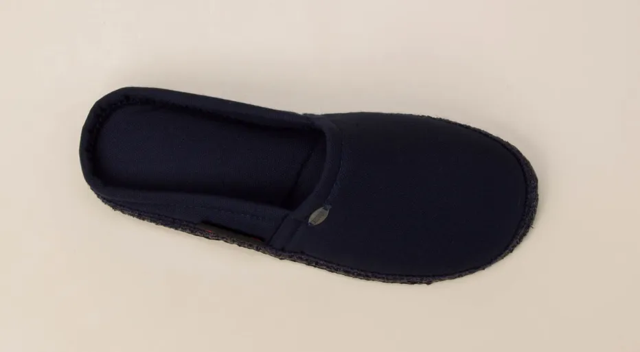 Minimalismus für entspannte Momente.Die Marke Giesswein präsentiert mit diesem Hausschuh ein stilvolles Essential im Segment der Pantoffeln. Ideal für ruhige Stunden daheim überzeugt das Modell mit samtig mattem Textil in sattem Dunkelblau und unkomplizierter Mule-Form. Die weiche Innensohle sorgt für ein angenehmes Tragegefühl, während die profilierte Gummisohle sicheren Halt auf glatten Böden bietet. Dezente Ton-in-Ton-Nähte und ein kleines Metall-Logo setzen hochwertige Akzente. Minimalistisch im Look, komfortorientiert in der Funktion – ein Beispiel für Quiet Luxury in der Loungewear-Saison. Ein Hausschuh mit Charakter – Giesswein-typisch durchdacht und langlebig gestaltet.