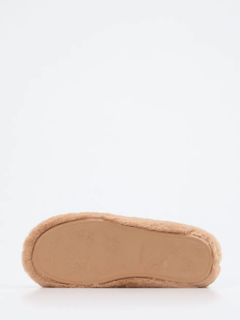 Tierisch gemütlicher Begleiter für Zuhause. Thies präsentiert mit diesen Pantoffeln eine charmante Loungewear-Ergänzung für den Herbst und Winter. Das weiche Textilmaterial in hellbrauner Farbgebung kombiniert mit flauschiger Oberfläche sorgt für behaglichen Komfort. Die geschlossene Vorderpartie und offene Ferse betonen den klassischen Pantoffelcharakter. Weiß abgesetzte Pfoten-Applikationen setzen verspielte Akzente im beliebten Kawaii-Stil. Die strukturierte Gummisohle bietet rutschfesten Halt auf glatten Böden. Ideal für alle, die Wert auf Gemütlichkeit und ein augenzwinkerndes Design legen. Ein kuscheliges Statement für stilvolles Relaxen mit dem Qualitätsversprechen von Thies.