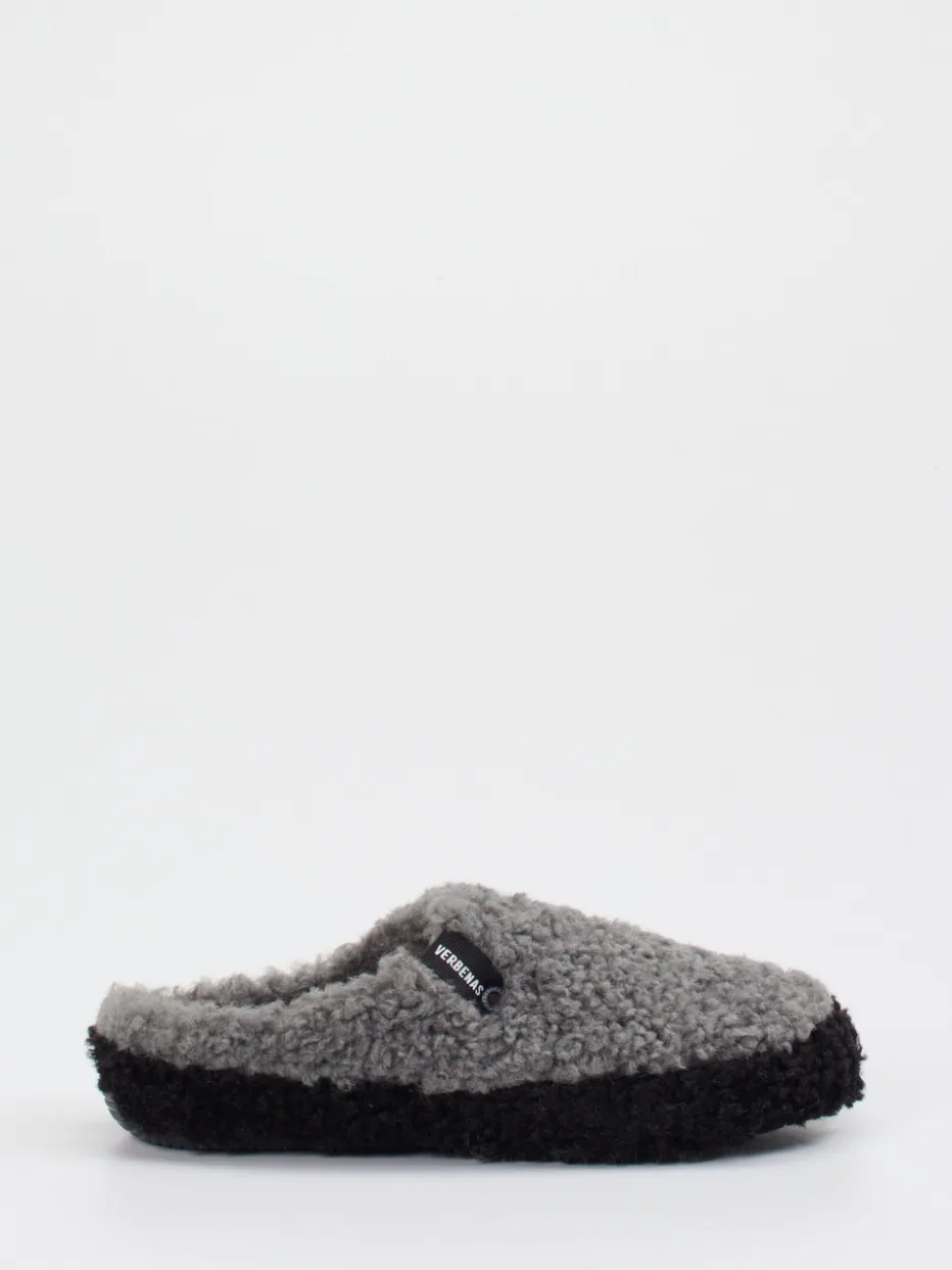 Entspannter Wohnkomfort trifft minimalistisches Design.Verbenas präsentiert mit diesen bequemen Pantoffeln ein stilvolles Accessoire für gemütliche Momente zu Hause. Das Modell aus Textil überzeugt durch seine besonders flauschige Haptik und die zurückhaltende mittelgraue Farbgebung mit schwarzen Akzenten. Die geschlossene Vorderkappe sorgt für warmen Halt, während die offene Ferse schnelles Reinschlüpfen ermöglicht. Eine profilierte Gummisohle garantiert Trittsicherheit – ideal auf glatten Böden. Inspiriert von Loungewear und dem Coziness-Core-Trend passt dieser Hausschuh perfekt zu relaxten Outfits. Ein weiches Interior, dezente Label-Details und hoher Tragekomfort geben dem Design seine markentypische Qualität.